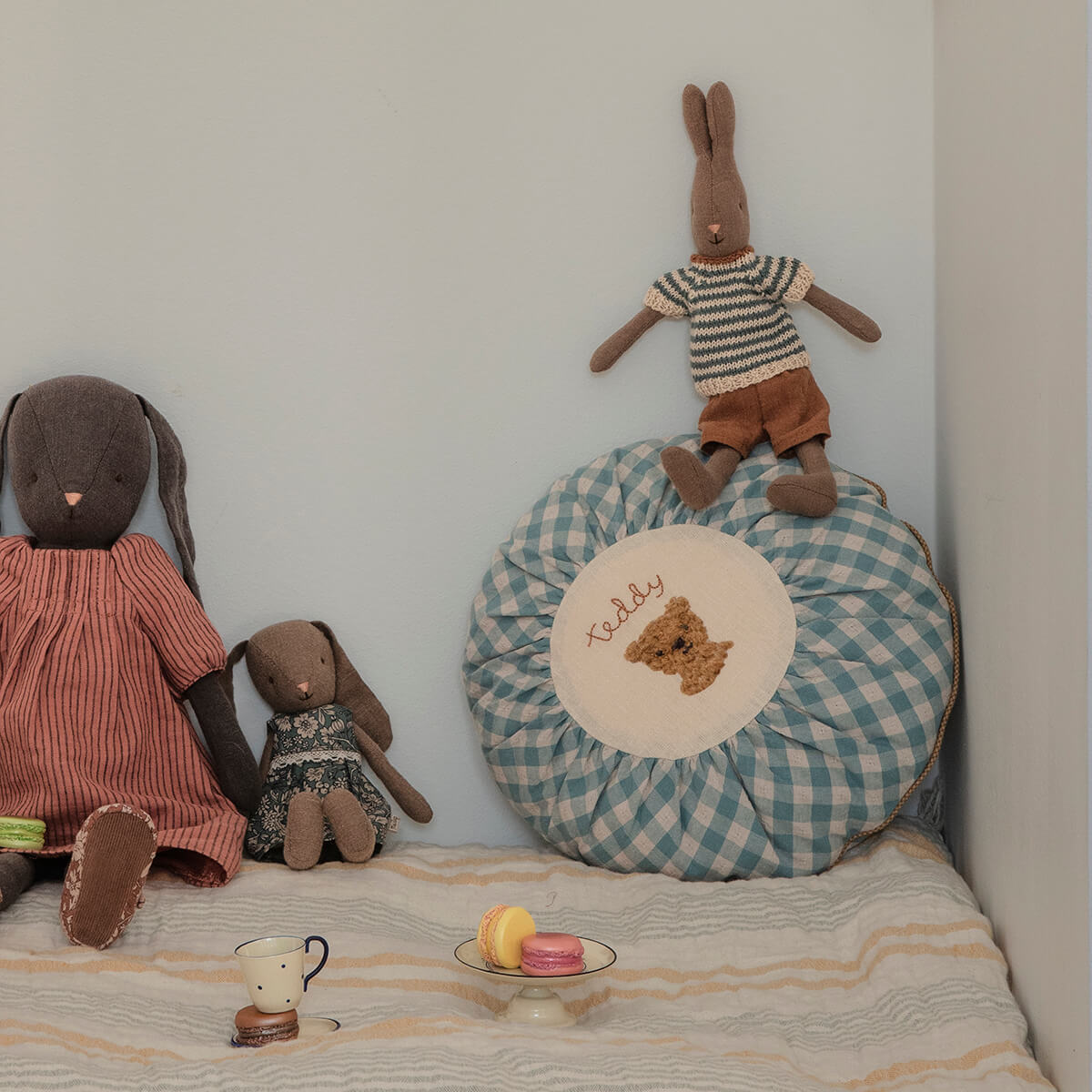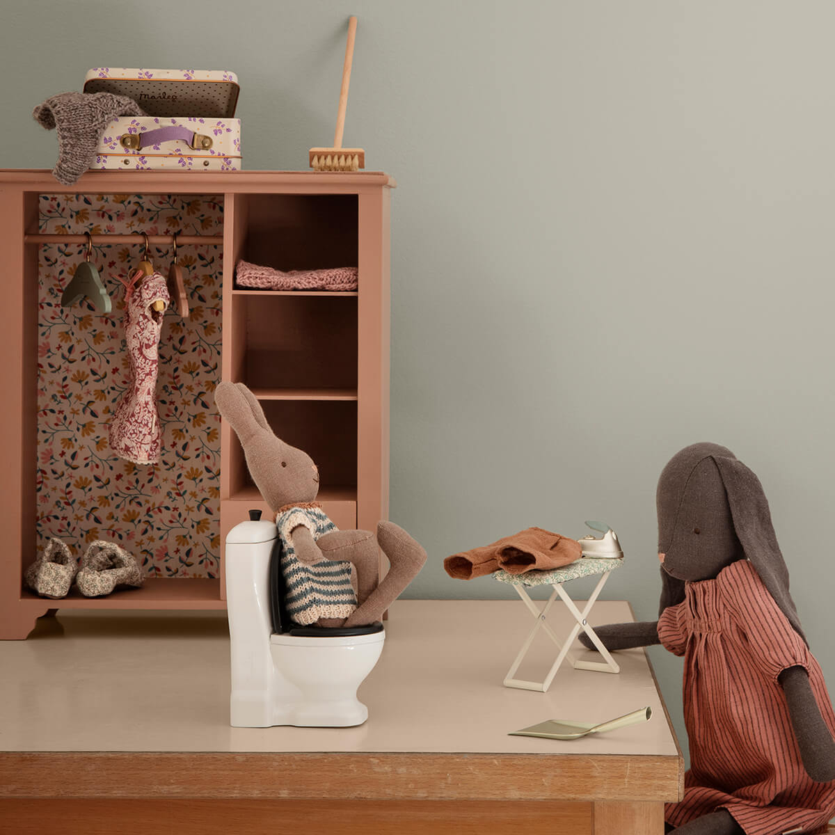 Brown Rabbit by Maileg. A classic rabbit made of soft natural linen fabric that gives a lovely hand feel and look. Size 1 rabbits fit into the Maileg dollhouse and all furniture size Mini and Miniature.
