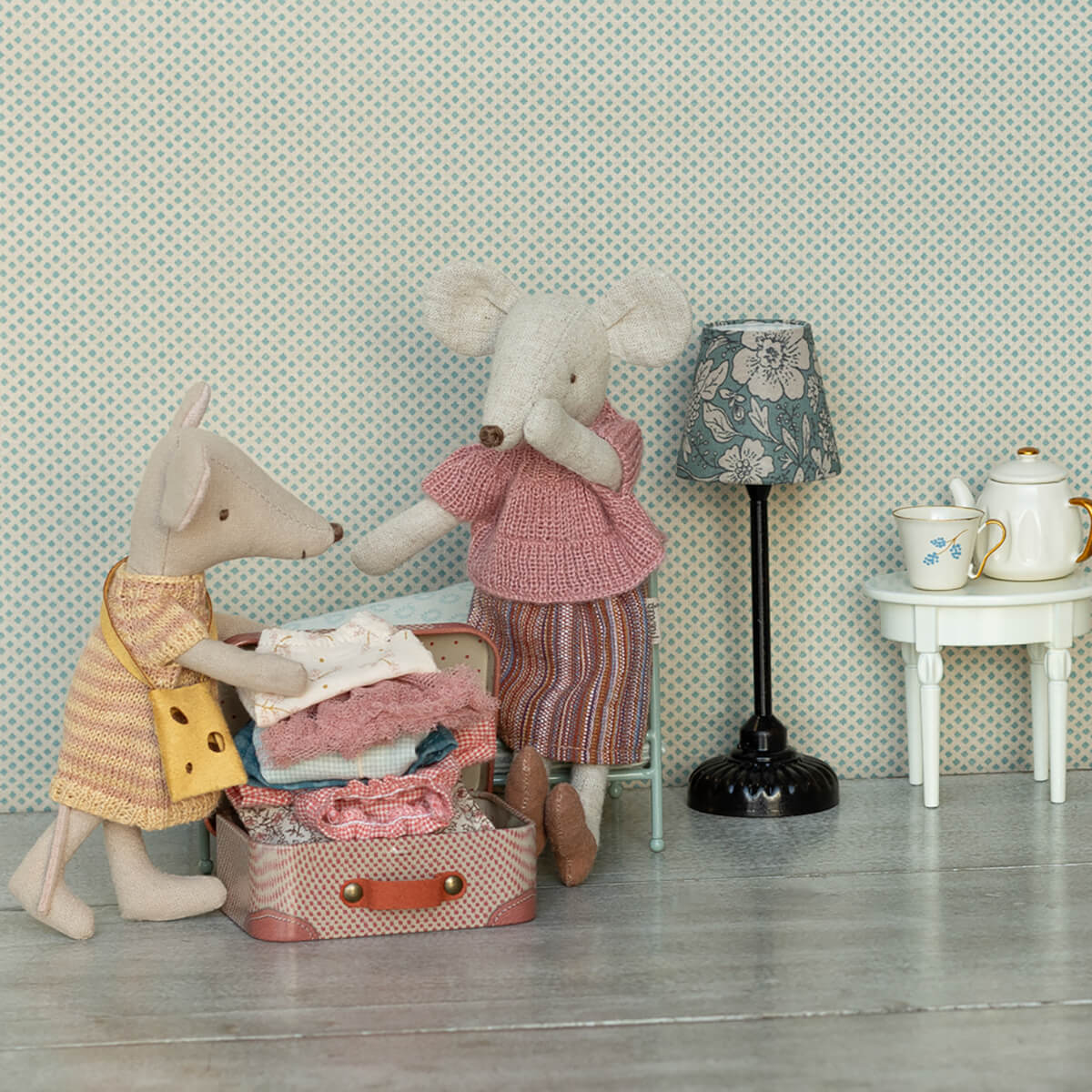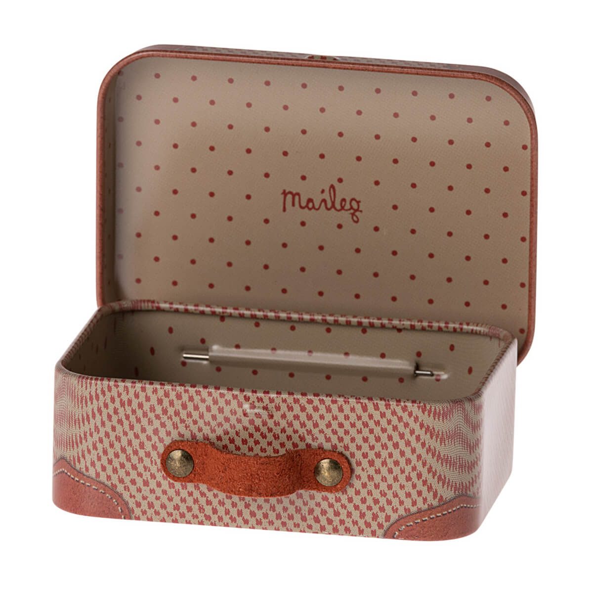 Micro Travel Suitcase by Maileg. This small metal suitcase with colorful illustrations and beautiful details can be used for any occasion: small gifts, storage of small items or for mice and small bunnies to bring their belongings on the go.