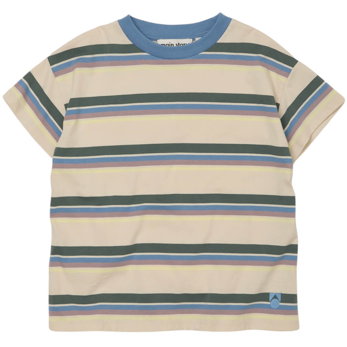 Loose T-Shirt by Main Story. A relaxed loose fit short sleeve tee with an all over stripe and contrasting neck.