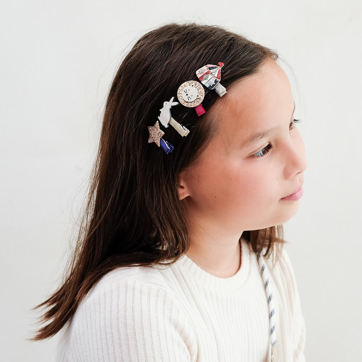 Circus Mini Hair Clips by Mimi & Lula. Roll up, roll up and meet these circus mini hair clips! Intricately crafted from a mesmerising mix of colours and textures, these clips are sure to turns heads wherever they go.