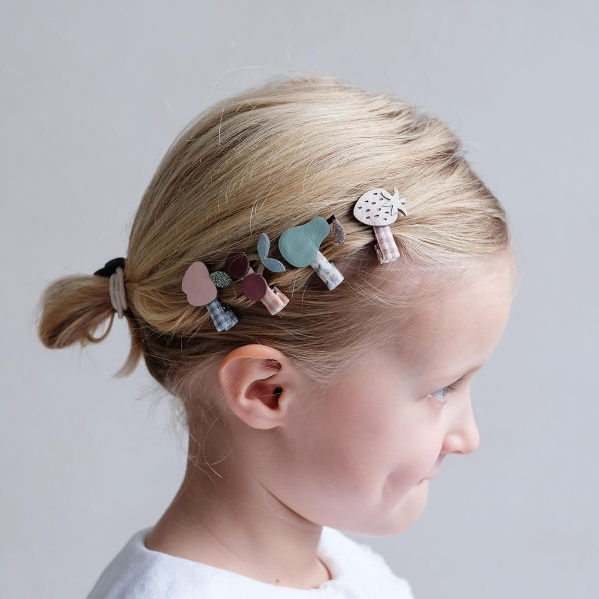 Fruit Mini Hair Clips by Mimi & Lula. Fruity fresh! We just adore these delicious looking mini clips, and we know you will too. Featuring mini fruits crafted from glitter, metallic and plain soft leatherette fabrics.