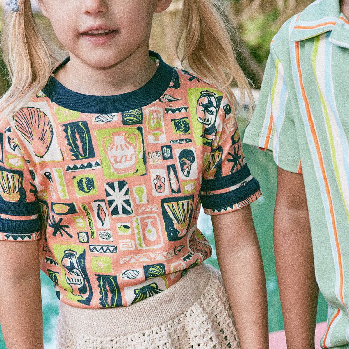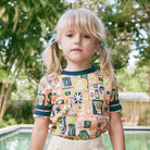 Rec Tee in Flamingo Collection by Misha & Puff. A classic slim-fit ringer tee in soft Pima cotton, with contrast appliqué striped sleeves and a contrast neckline.