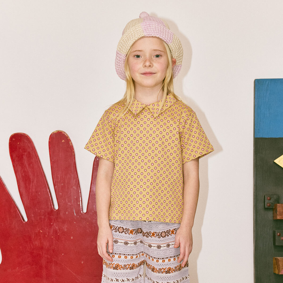 Silvia Tee by Misha & Puff. A boxy short-sleeved tee in organic cotton, featuring a mod-inspired silhouette and collar, and snap closure at the back neck. This cotton is slightly thicker than Misha & Puff's Pima styles, with a touch of structure that holds shape.