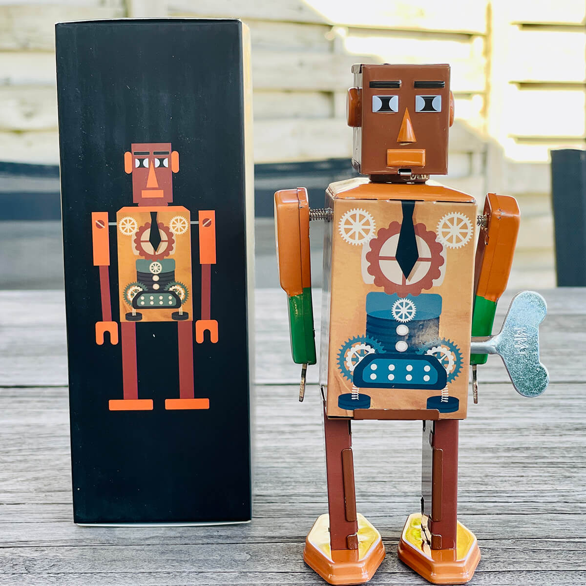 Business Bot limited edition wind up tin robot by Mr & Mrs Tin. Wind them up and watch them go!