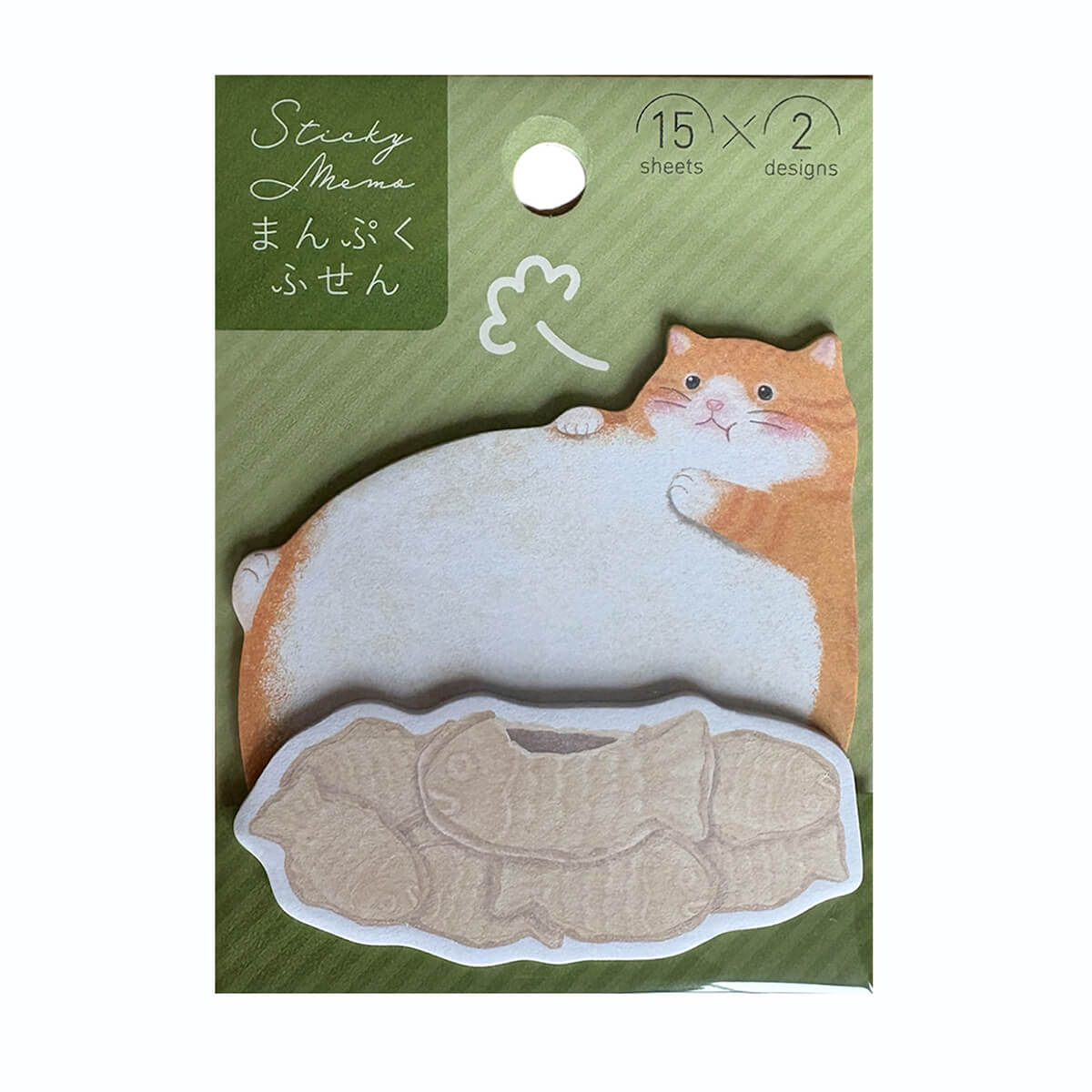 Greedy Ginger Cat Sticky Notes by Gakken Japan. Adorable sticky notes featuring a round belly ginger cat and smaller fish shaped biscuit notes.