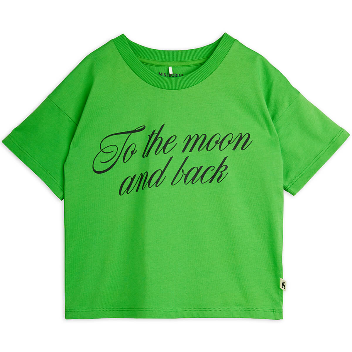 To The Moon Tee by Mini Rodini. Short sleeved t shirt with a graphic text print.