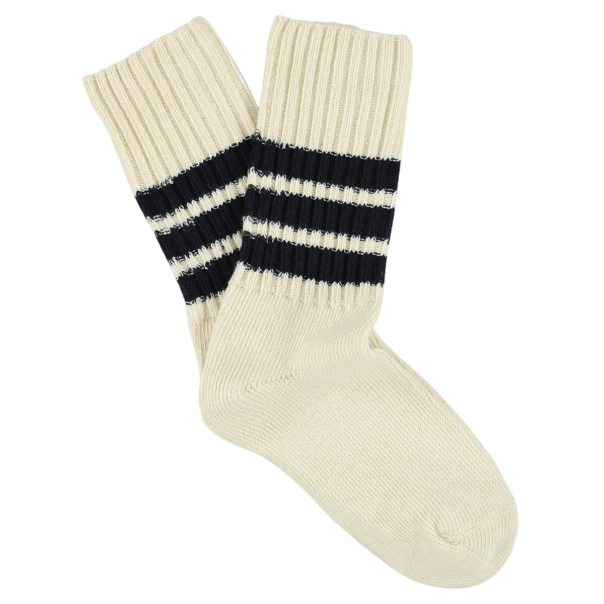 Crew Stripes Socks in Ecru / Blue by Escuyer