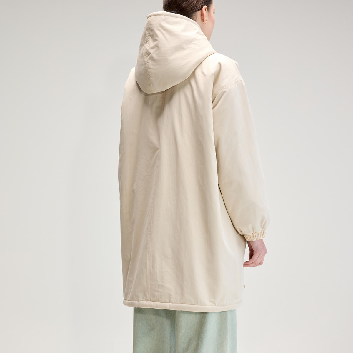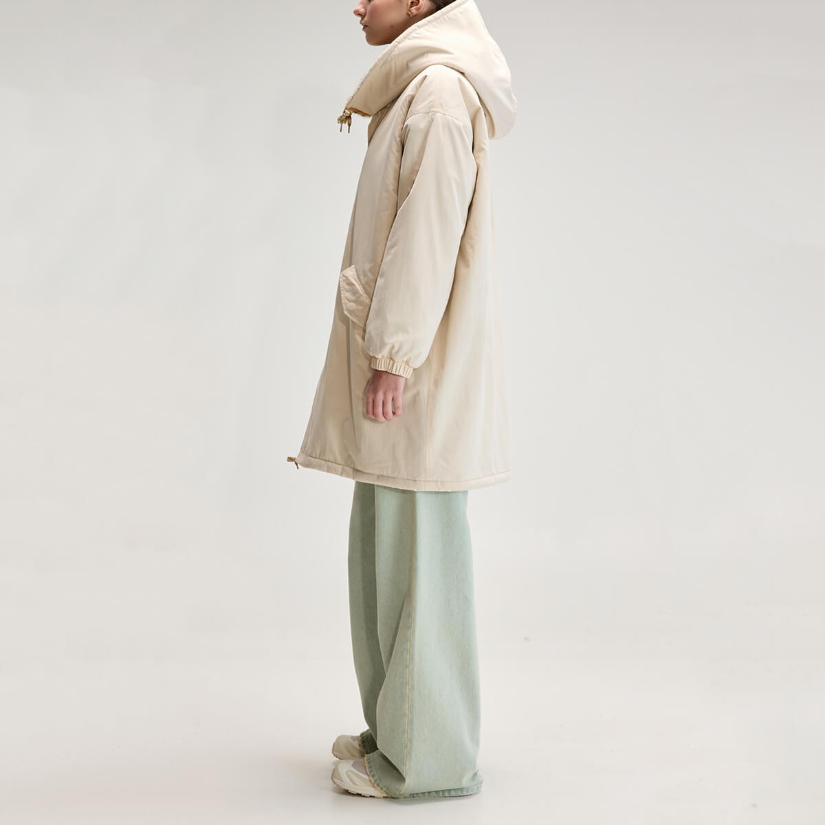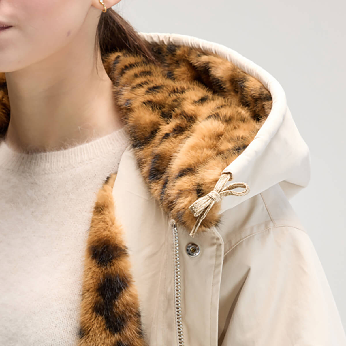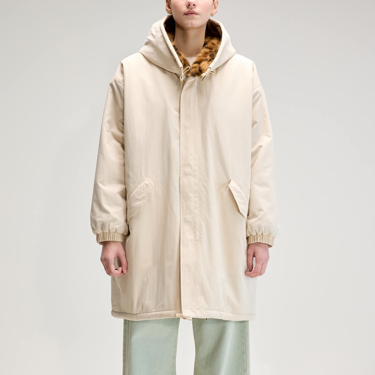 Laos Hooded Parka by Bellerose. Oversized hooded coat in natural with raglan sleeves and elastic hems and lined with leopard faux-fur.