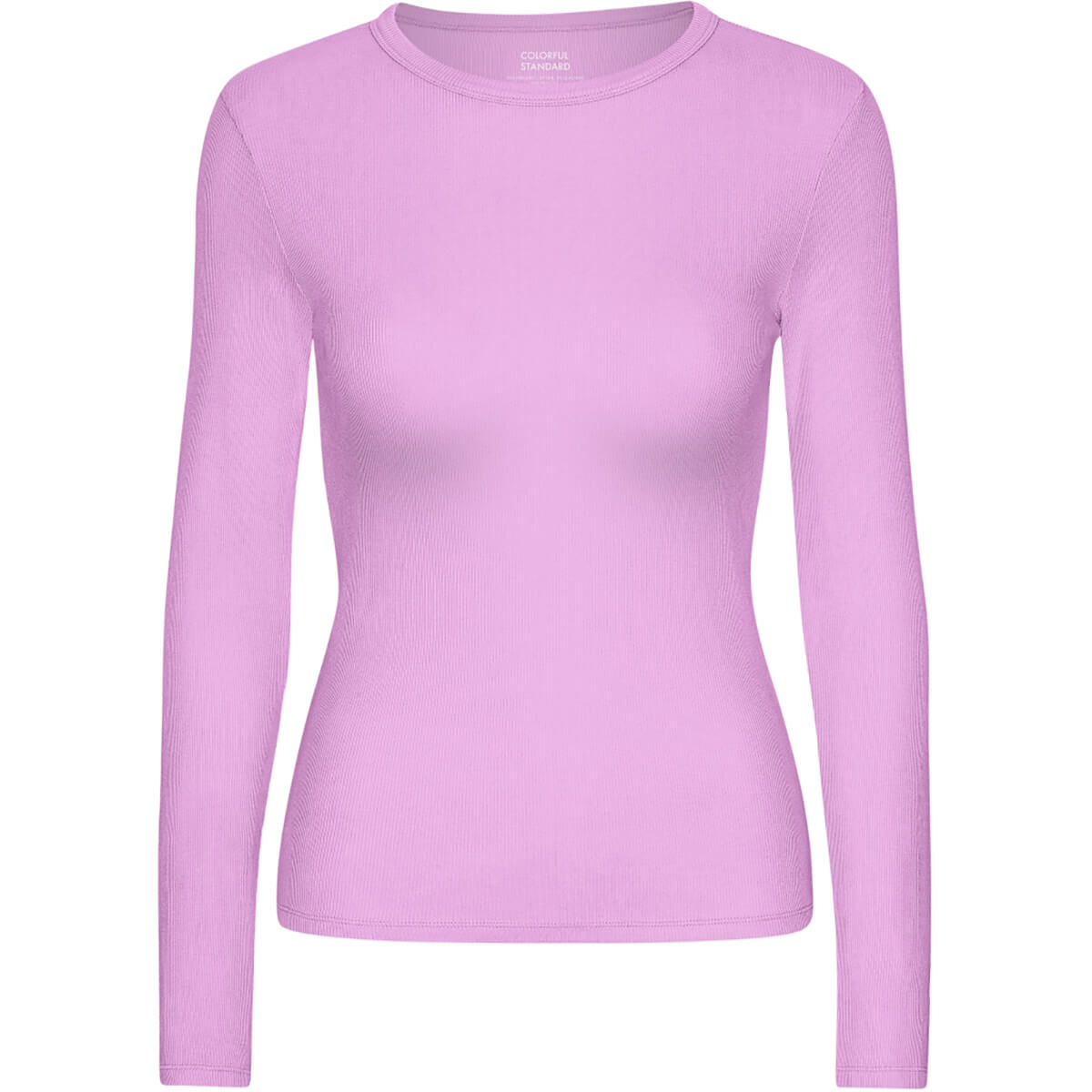 Women's Rib Long Sleeve T-Shirt by Colorful Standard. Designed with versatility, the Rib-Knitted Organic long-sleeve t-shirt features a slim fit that effortlessly shapes and supports various body types. The inherent stretch in the rib-knit fabric provides a form-fitting yet comfortable profile, making it an ideal choice for both casual and semi-formal occasions.
