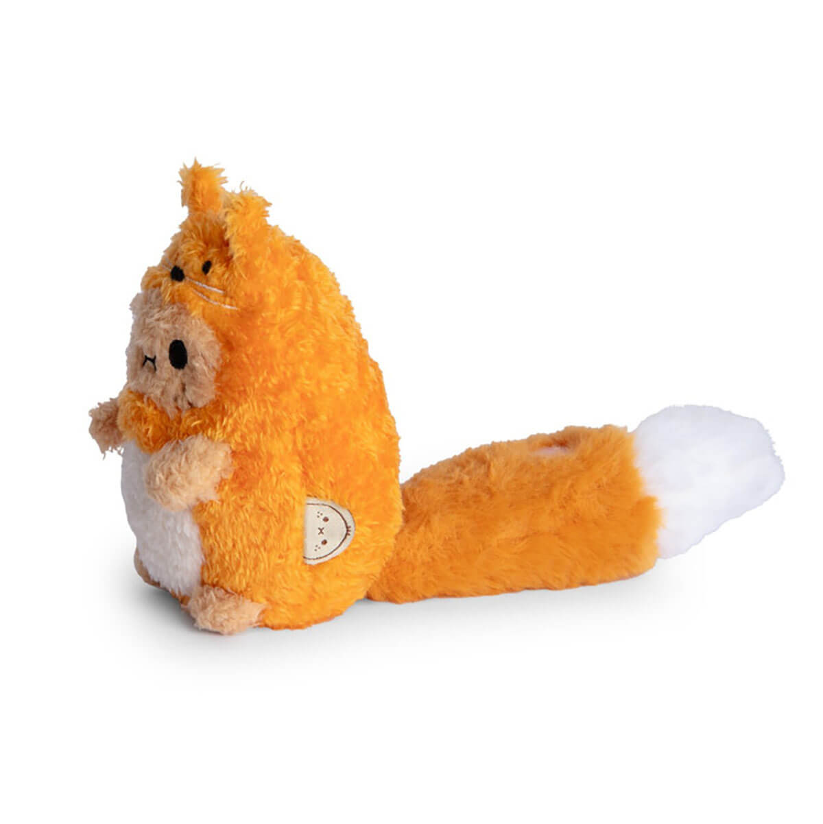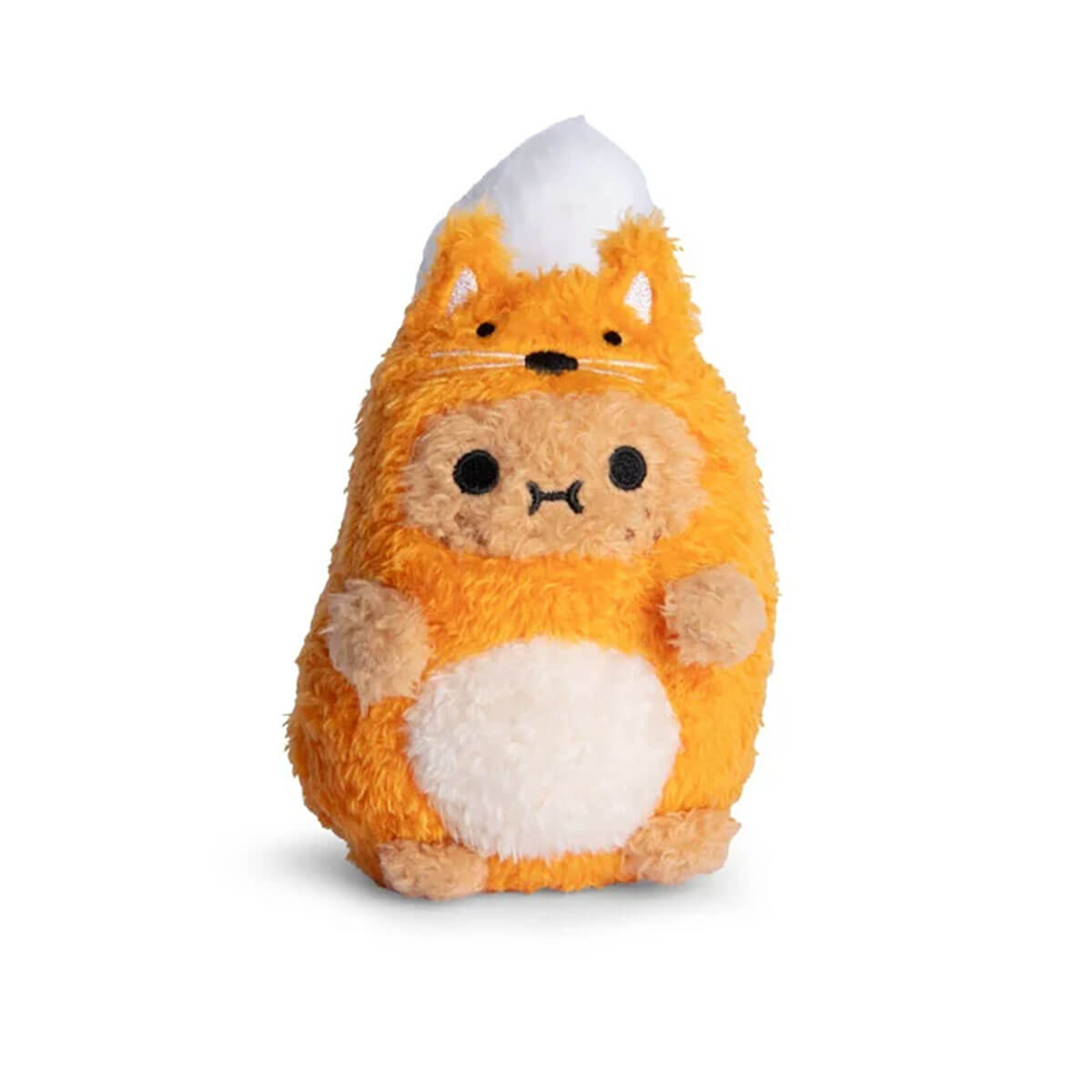 Ricespud Foxy Mini Sitting Plush Toy by NooDoll. Foxy Ricespud is here, ready to pounce into your heart! This clever little spud loves to play and explore at night, making for the perfect bedtime companion. This mini potato plushie is dressed up in an adorable orange fox suit and features one of the fluffiest tails ever seen in Ricespud history, complete with a heart-shaped Velcro patch so you can fasten it upright or leave it hanging down.