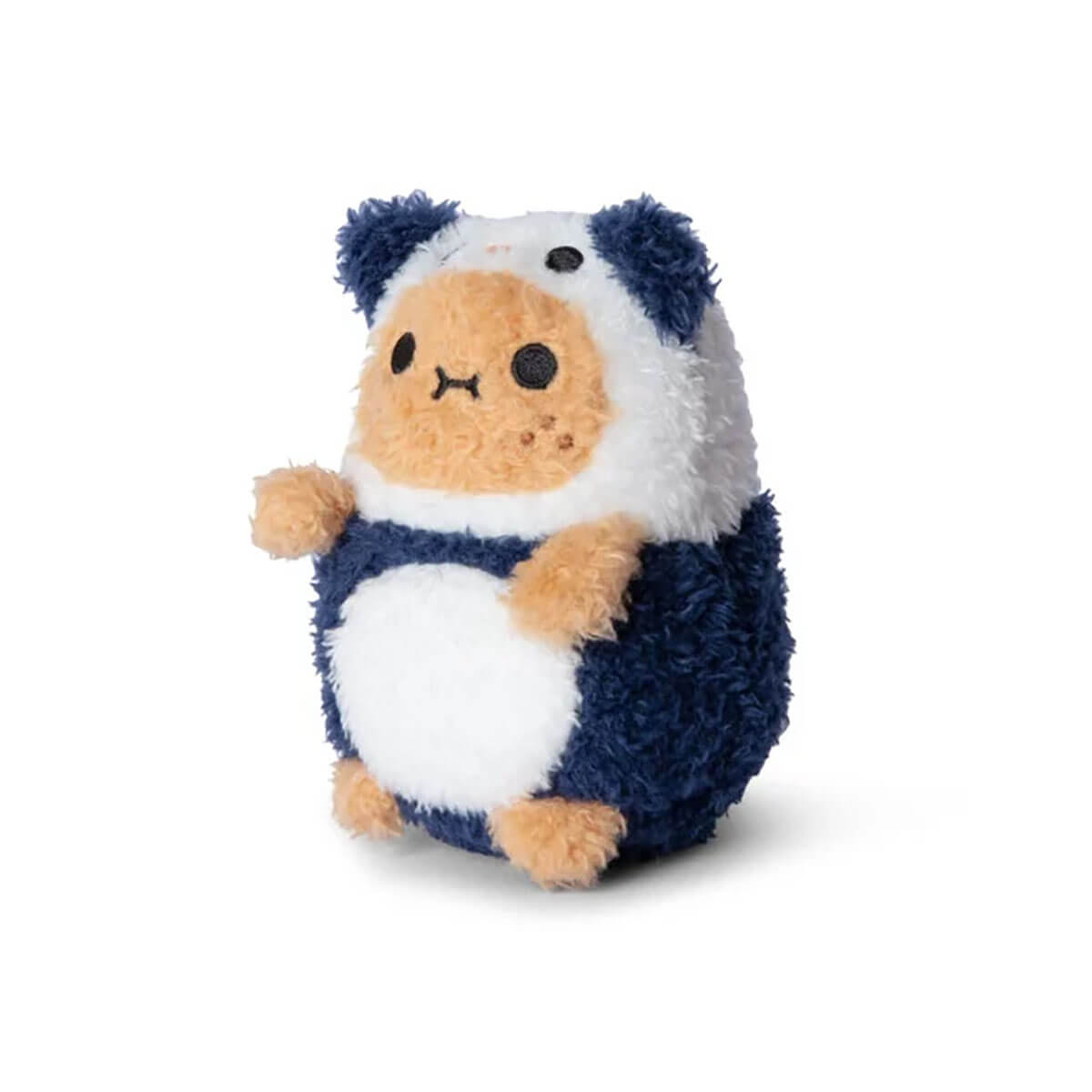 Ricespud Panda Mini Sitting Plush Toy by NooDoll. Wearing their favourite panda costume, our classic Ricespud has never looked more cuddly! This fluffy little spud loves nothing more than playing in the lush forest and chomping down on some delicious bamboo. This mini potato plushie is dressed up in a cute black-and-white giant panda suit, complete with tiny little ears and fine embroidered details. Absolutely irresistible!