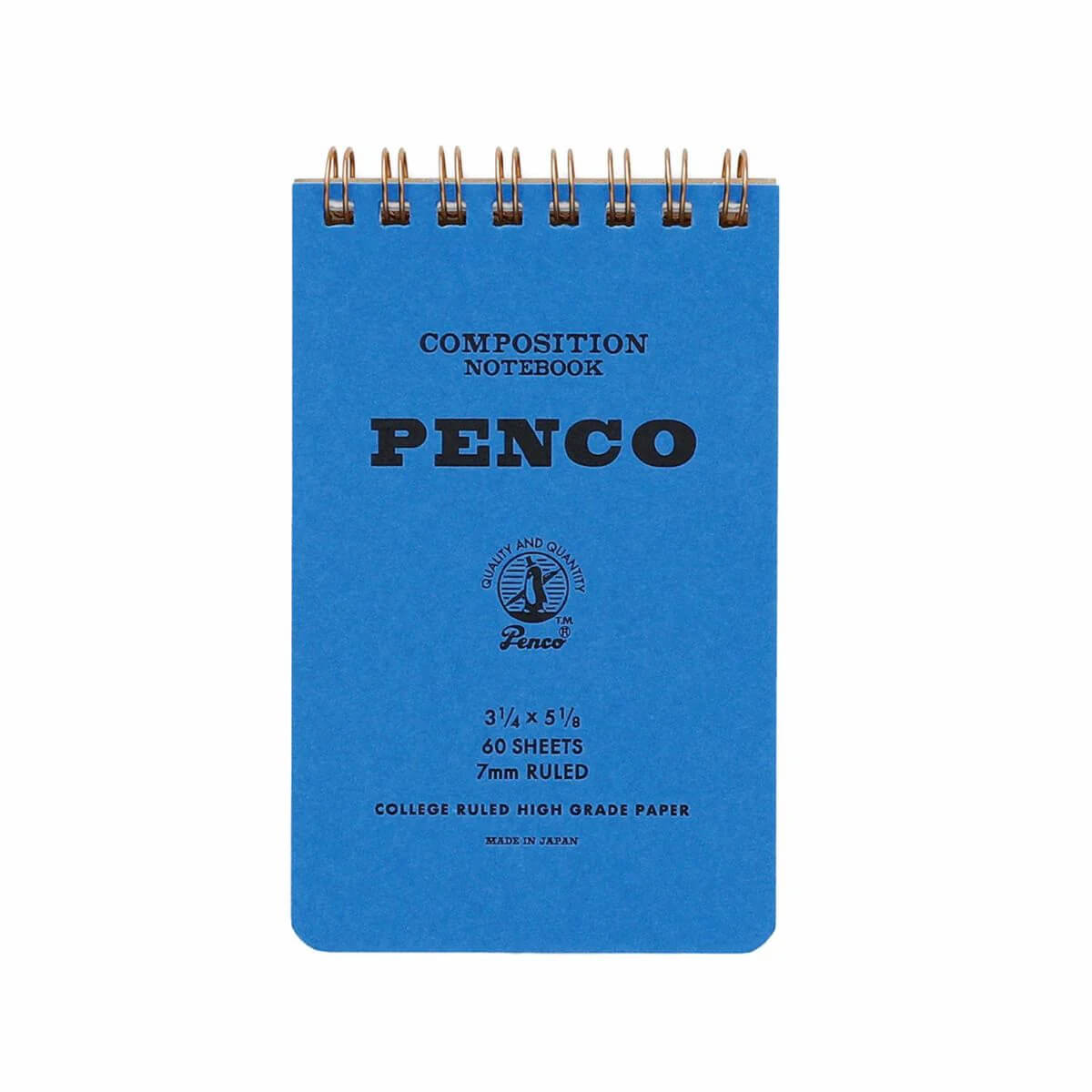 Small coil composition notepad by Hightide Penco. Featuring a sturdy cardboard cover with an attractive letterpress printed logo, this notebook has a practical spiral binding and contains 120 pages of 7mm ruled blue lines on smooth water-based paper. The perfect size to carry around.