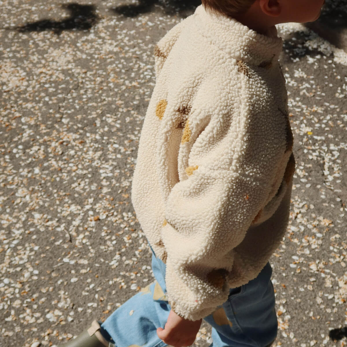 Jody Teddy Jacket by Konges Sløjd. Warm teddy jacket with soft inside fleece. Features a high collar and elasticated cuffs.
