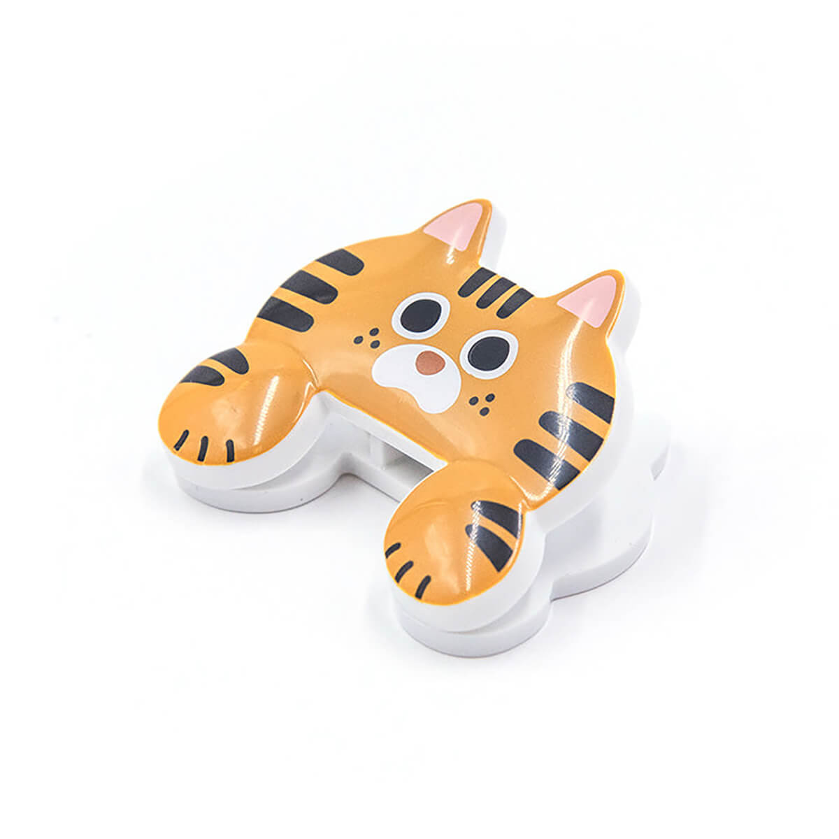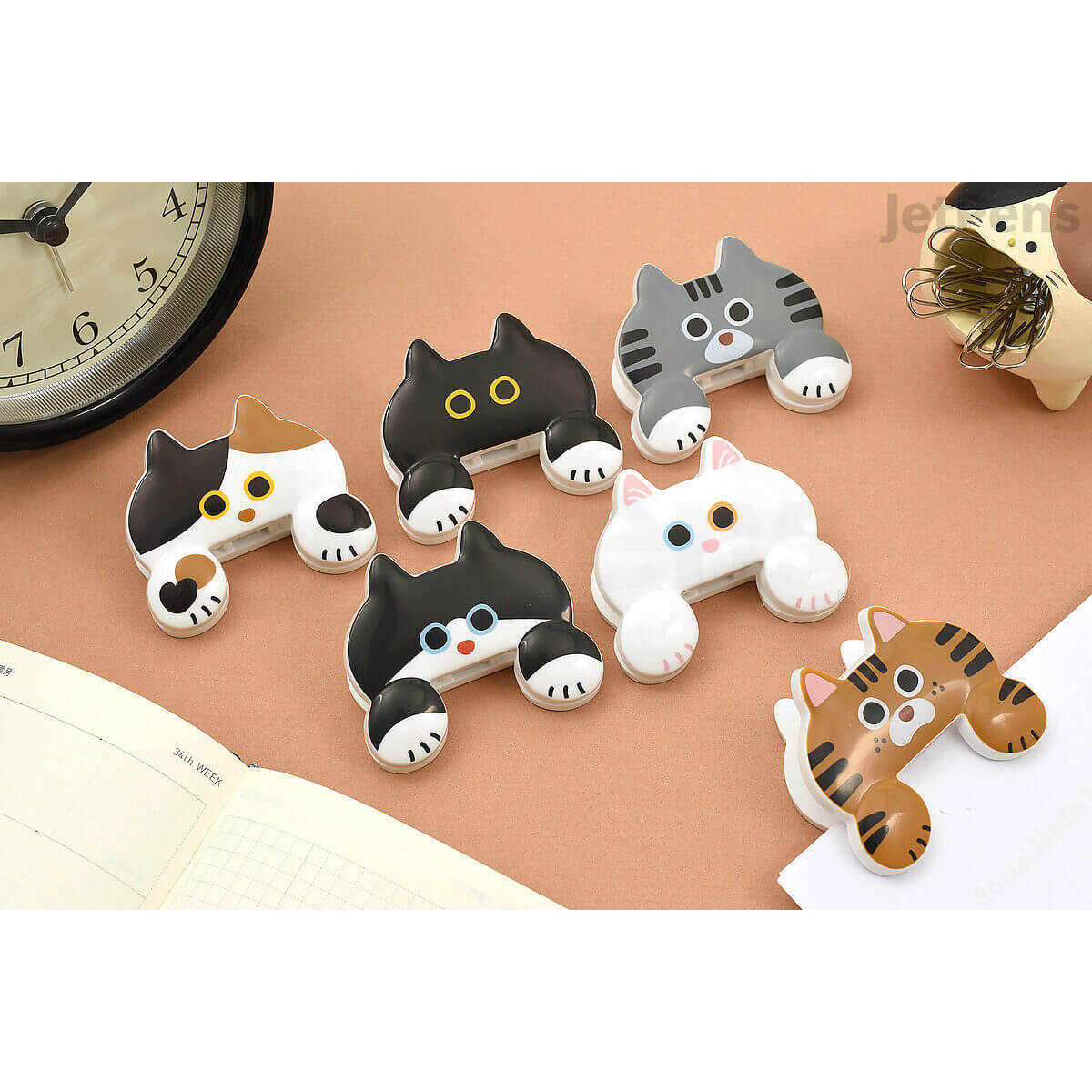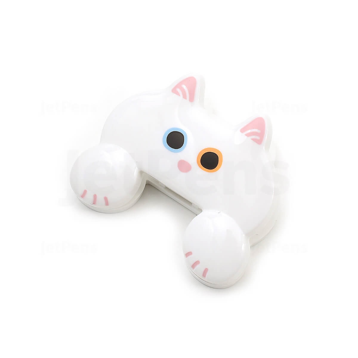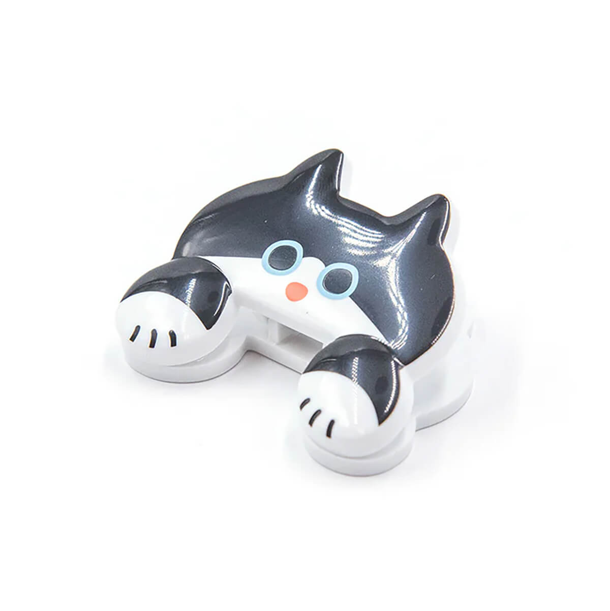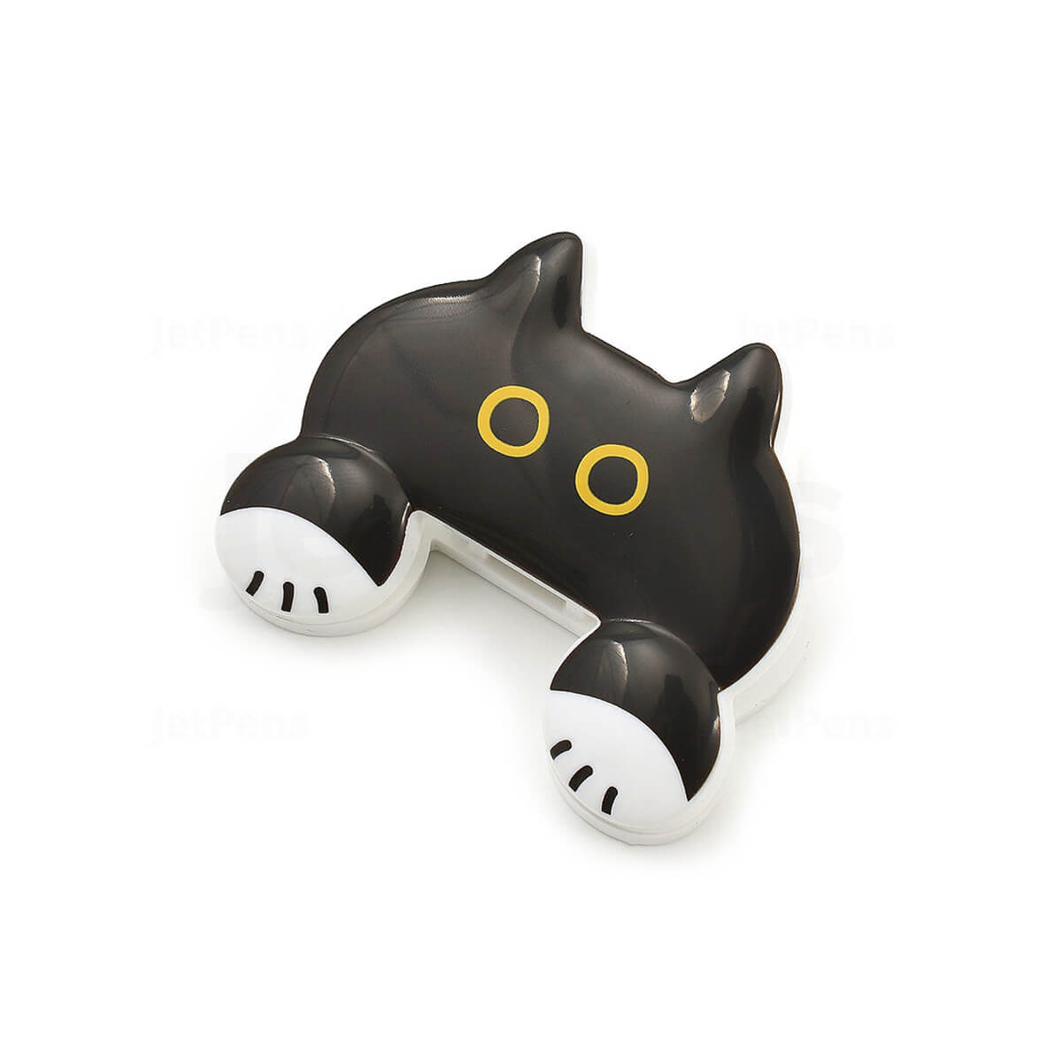 Cat Jittome Clip by Sun-Star Japan. This adorable, lightweight clip is perfect for holding your documents. It's designed to imitate a cat peeking over your work while leaving as much of the page visible as possible, so you can see important information at a glance. The clip is spring-loaded, allowing it to open wide and hold your papers securely.