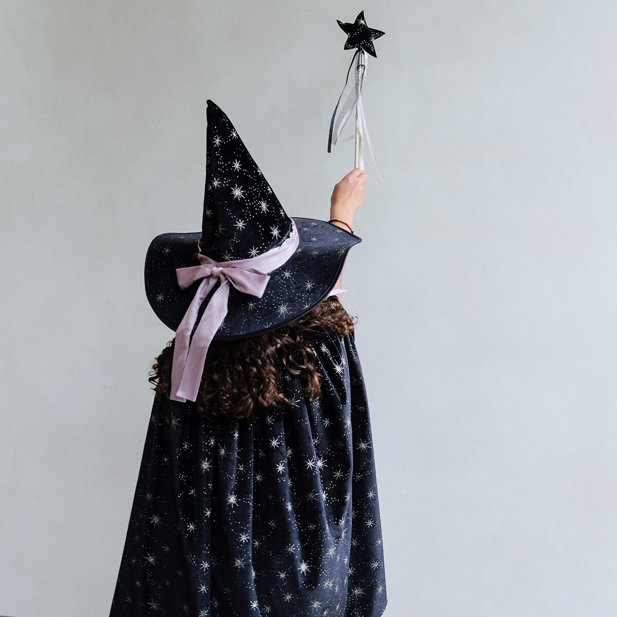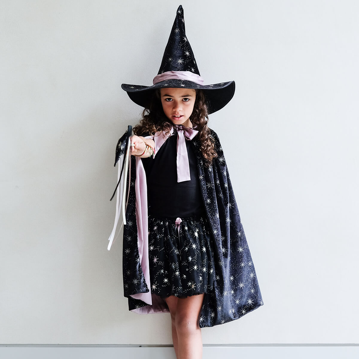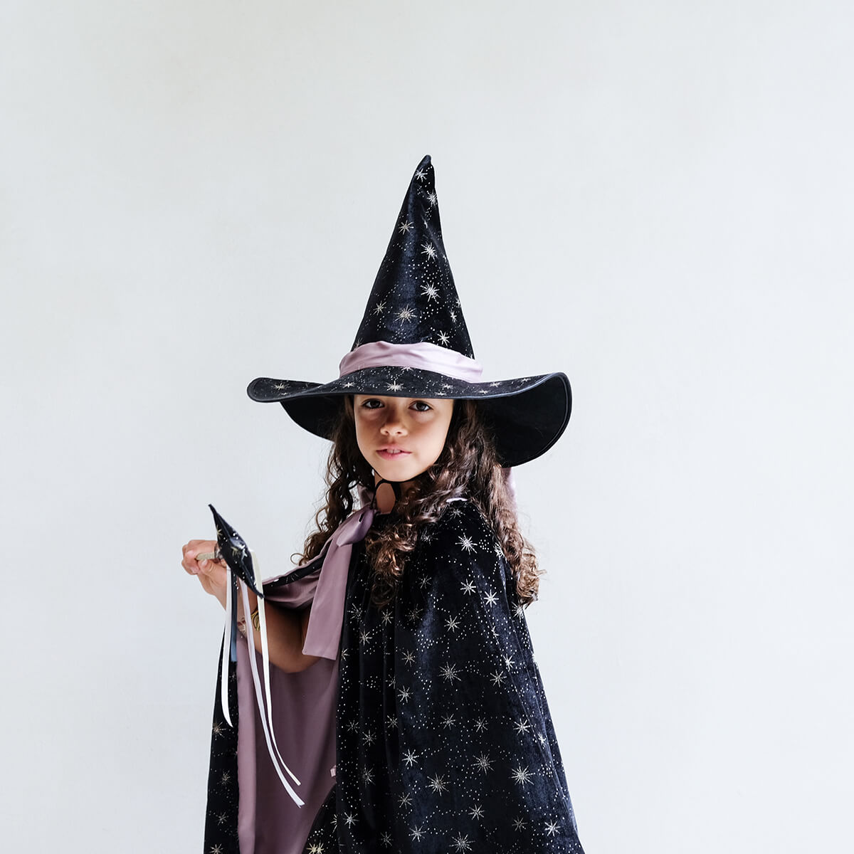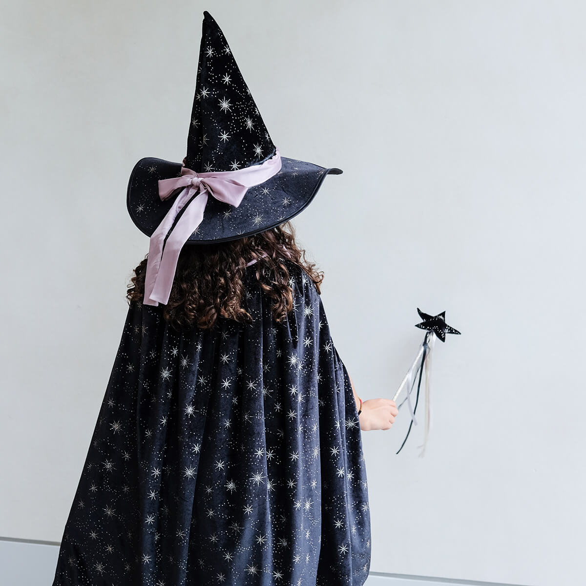 Agatha Velvet Witch Cape by Mimi & Lula. Stir up a spooky spell in style this Halloween with the Agatha velvet witch cape! Why not pair with our matching Agatha hat, tutu or wand for a fully frightful look!