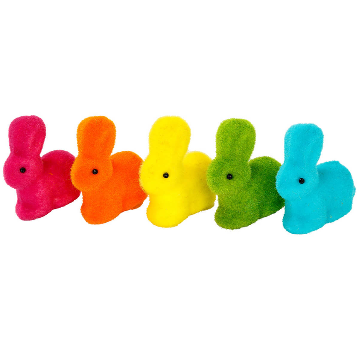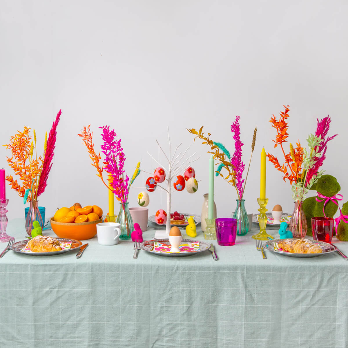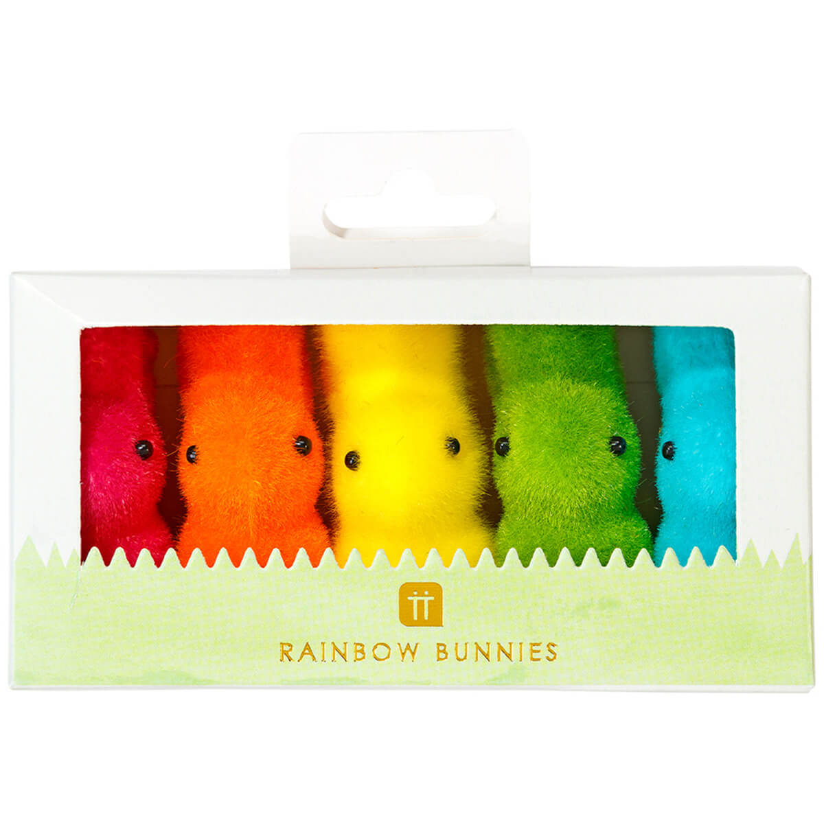 Easter Bunnies Decorations by Talking Tables. Brighten up your Easter table décor with 5 rainbow coloured bunny ornaments. Use them as place settings at your Sunday roast or place on top of our grass table runner to bring the outside in. Alternatively, have them dotted around the house or garden as clues for the little ones as they venture out on an Easter Egg hunt.