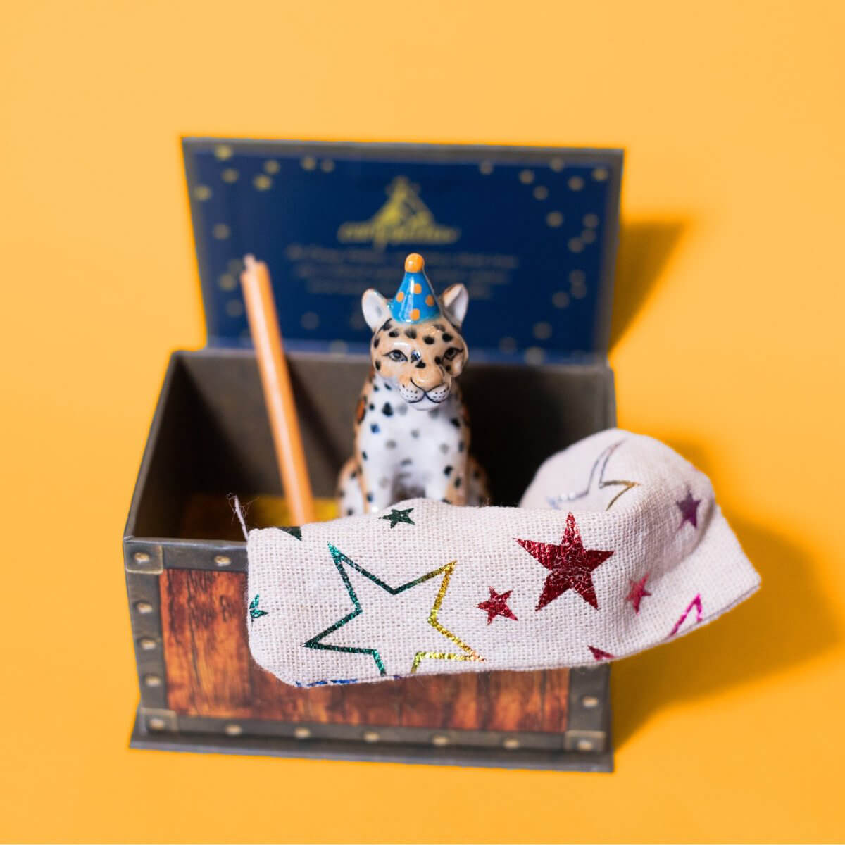 Jaguaeceramic cake topper by Camp Hollow. Crafted in fine porcelain and meticulously hand-painted, this beautiful heirloom quality candle holder will celebrate every birthday and occasion for years to come.
