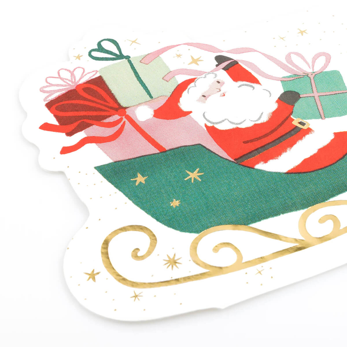 Santa's Sleigh paper napkins by Meri Meri. These joyful paper napkins are perfect to add festive cheer to your gatherings. The mix of traditional colours, with modern pops of pink and mint, will team beautifully with your other tableware and decorations.