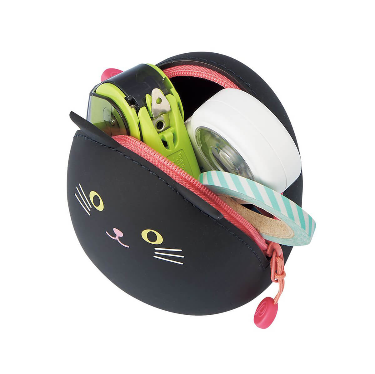 Black Cat PuniLabo Egg Pouch by Lihit Lab. An egg-shaped pouch that can stand upright. This super cute kitty can be used as a pouch for stationery accessories or as a cosmetic pouch. In soft touch silicone with a brightly coloured zipper fastening. You can also squeeze the sides to make the opening wider for easy access to everything inside. The egg pouch is a great desk accessory and is also super portable. Made from a tactile, suede-feel silicone for a luxurious touch.