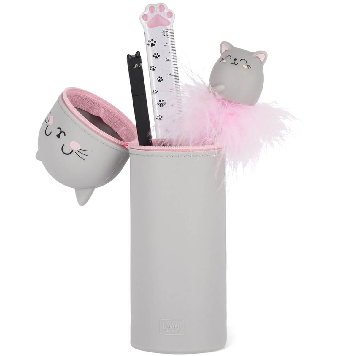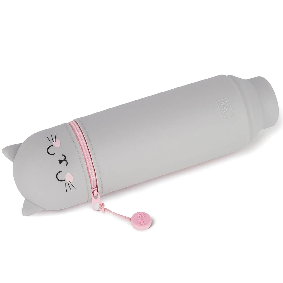 Kitty Kawaii two-in-one soft silicone pencil case by Legami. This school bag essential has a dual use as a pencil case and pen holder due to its clever design and retractable function. In soft touch silicone with a zipper fastening.