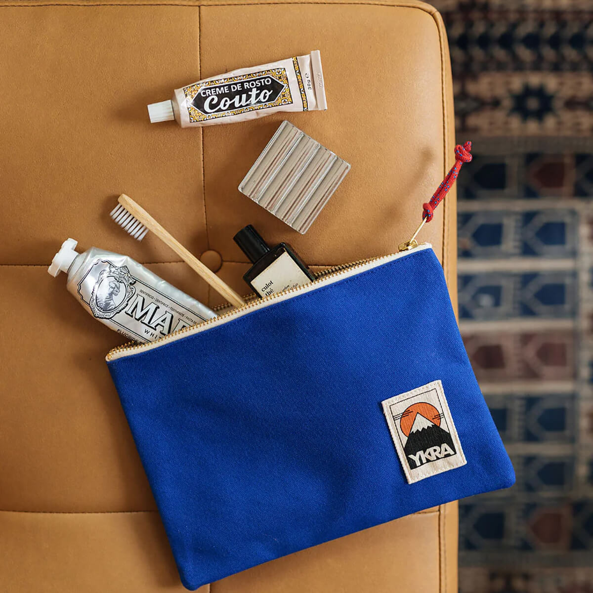 Pouch by YKRA. Crafted our signature, thick and durable 500 gm cotton tent canvas, the pouch is built to last. It features a reliable YKK zipper. Perfect for organizing cables, storing makeup, tools, art, and craft supplies, stationary, or toiletries, the pouch is versatile, and ideal for carrying in your backpack.