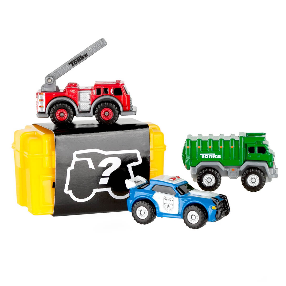 Micro Metals Surprise Box by Tonka. With Tonka Micro Metals all of your favourite Tonka vehicles are now available in miniature! This iconic line from Tonka offers all the rescue, construction and service vehicles in awesome micro sized metal versions! Each free-wheeling vehicle is crafted with attention to detail and is built micro-sized, but Tonka tough! Each surprise mystery vehicle comes in a Toolbox capsule and there are 6 to collect.
