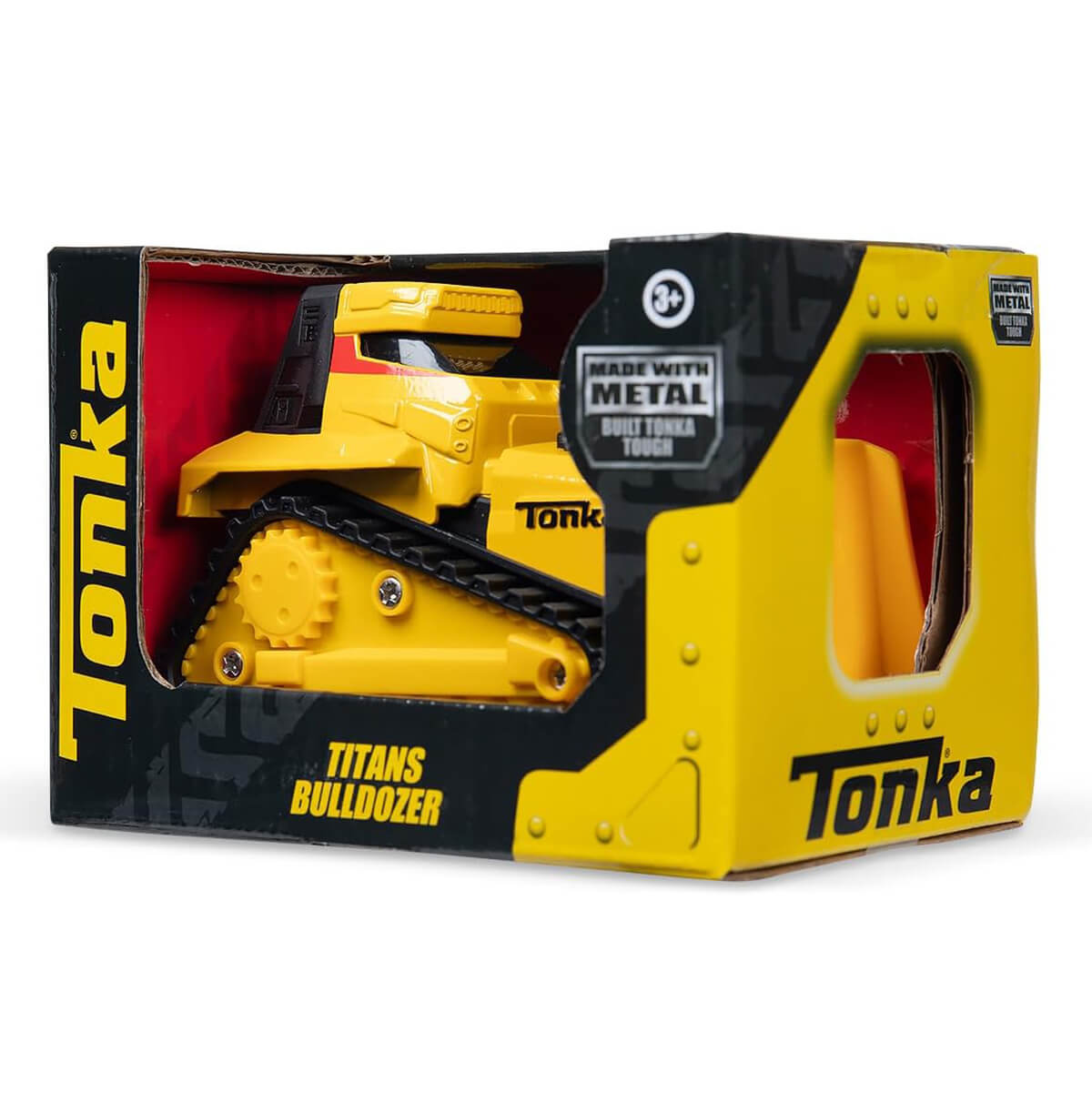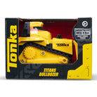 Steel Classics Titans Bulldozer by Tonka. From sandbox jobs to indoor missions, the Steel Classics Titans range brings real Tonka action in a compact form. Each vehicle pairs stamped steel + rugged plastic with a working feature for authentic construction play. Built for durability, easy push-along control, and classic Tonka style—ready for indoor & outdoor play.