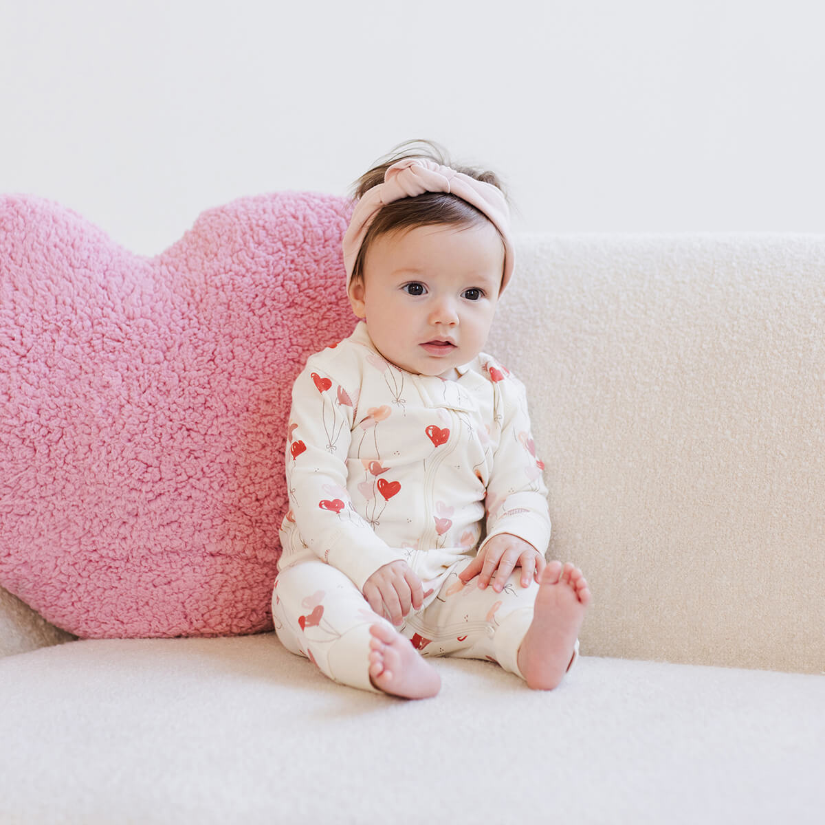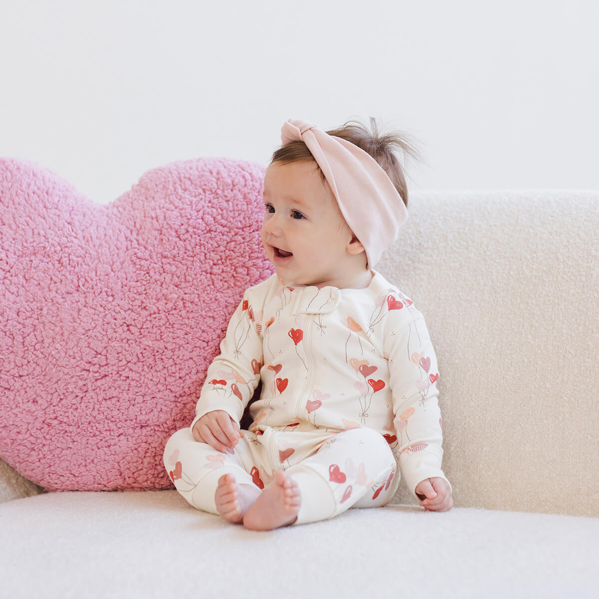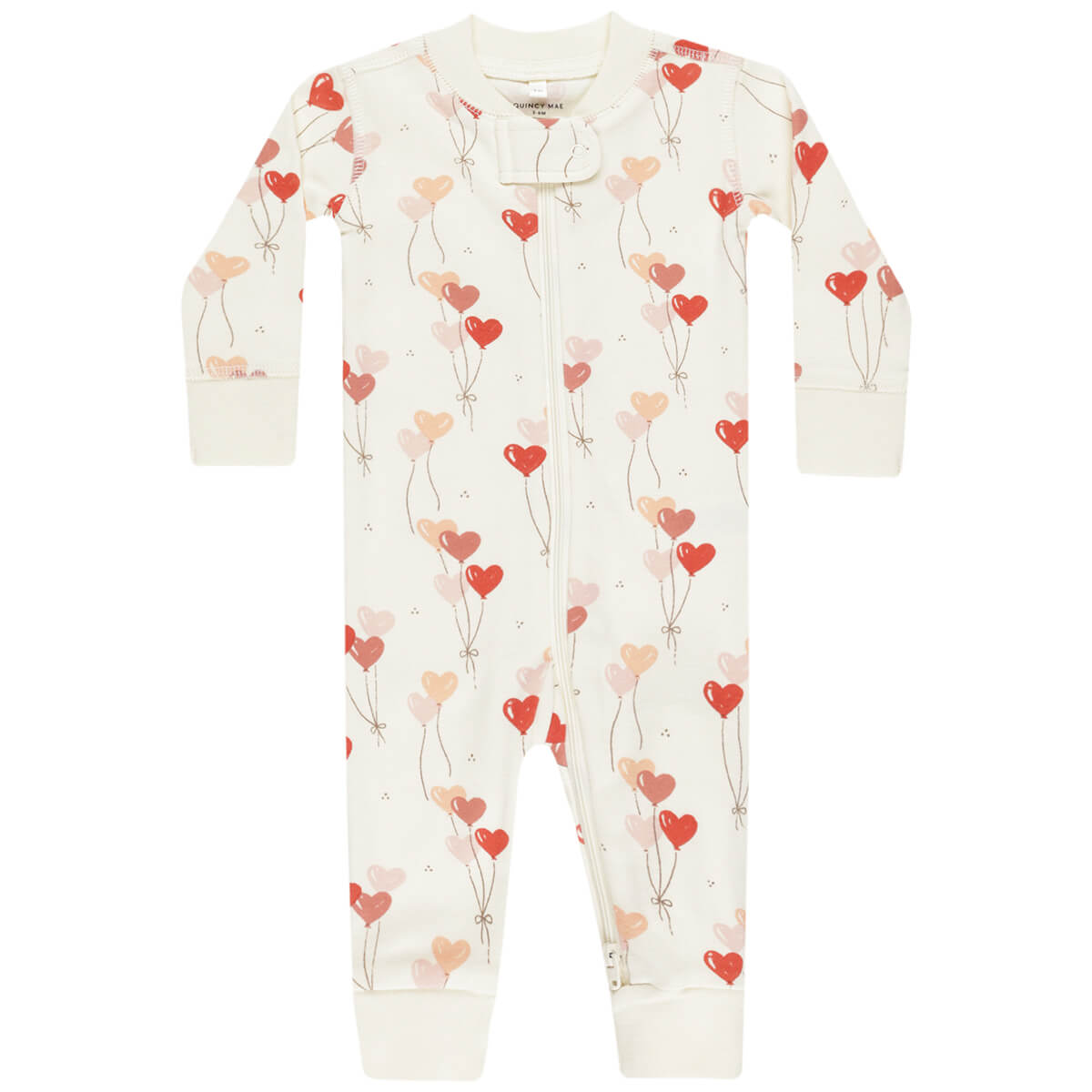 Zip Long Sleeve Sleeper in Heart Balloons by Quincy Mae