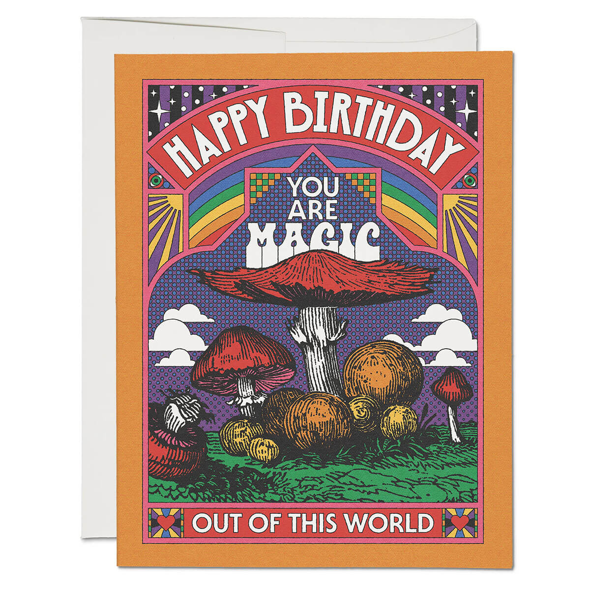Out Of This World greetings card by Red Cap Cards. Features an illustration by Andrew McGranahan. Printed in the USA on heavyweight card stock. Blank inside with white envelope.