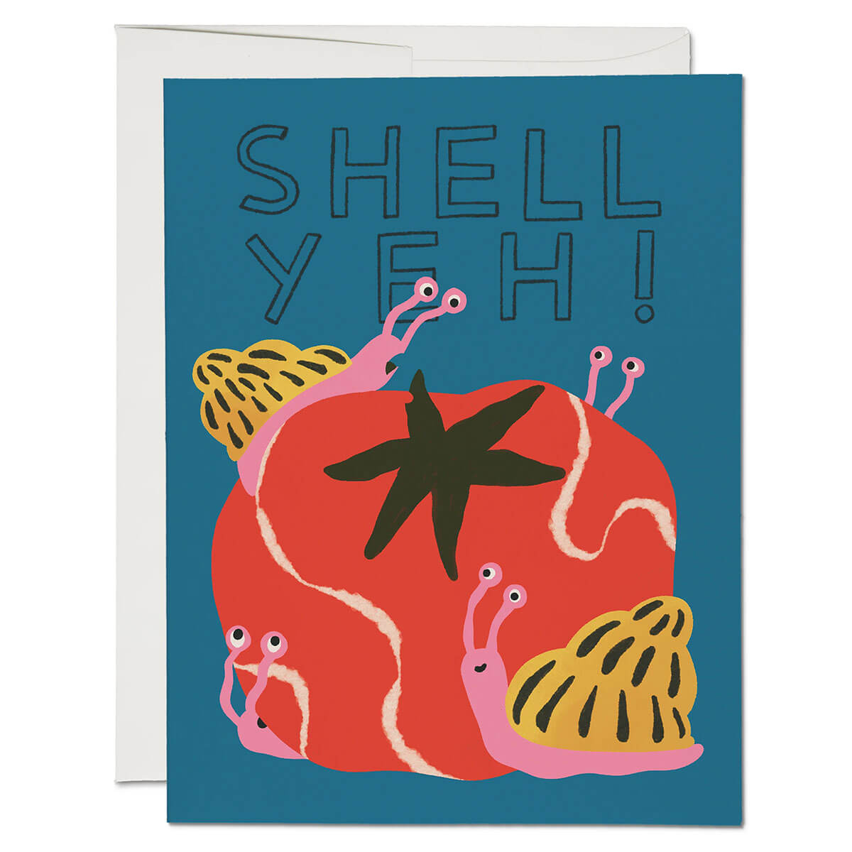Shell Yeh greetings card by Red Cap Cards. Features an illustration by Hannah Bonn. Printed in the USA on heavyweight card stock. Blank inside with white envelope.