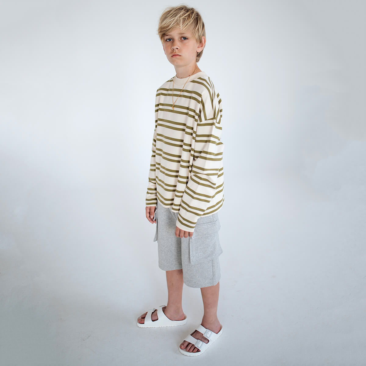 Oversized Boxy Sweater in Green Moss Stripe by Repose AMS