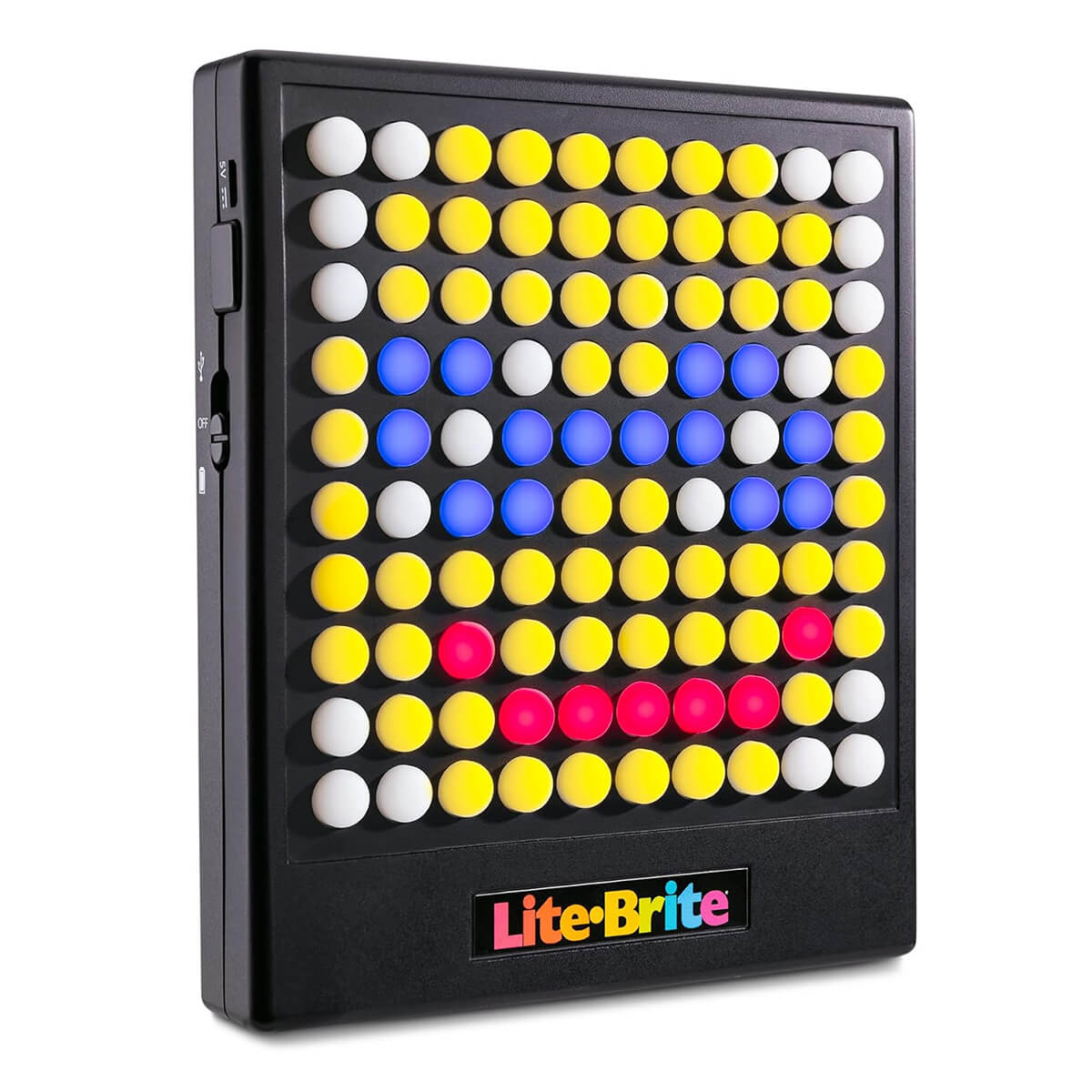 Lite Brite Touch by Hasbro. This all-new Lite-Brite features buttons instead of pegs. Press the 100 light-up buttons to swap through a variety of colours as you create art or play games. There are 3 fun games to play, including Lite Break, Lite Match, and Lite Snake.