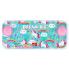 Unicorn mini water game by Legami. A unicorn-themed version of the much-loved classic water ring toss game - press the buttons to propel the coloured rings onto the posts. And don't worry if you don't hook them all on the first try. The water game is so small you can take it everywhere you go and practise until you become a champion.
