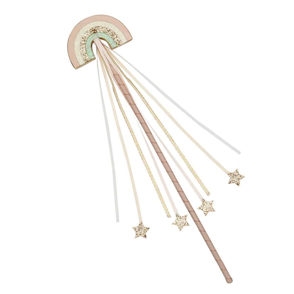 Enchanted Rainbow Wand by Rockahula. Wave this magical rainbow wand and spread some enchantment. With a ribbon wrapped centre stem and pretty grosgrain streamers - it is just perfect for magical adventures, imaginative play, or a fun addition to the dressing up box.