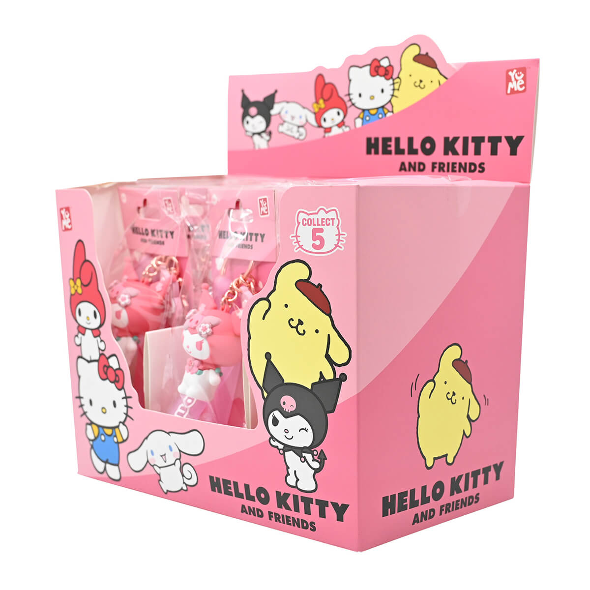 5 characters to collect - Hello Kitty, My Melody, Kuromi, Cinnamoroll and Pompompurin. Sold seperately.
