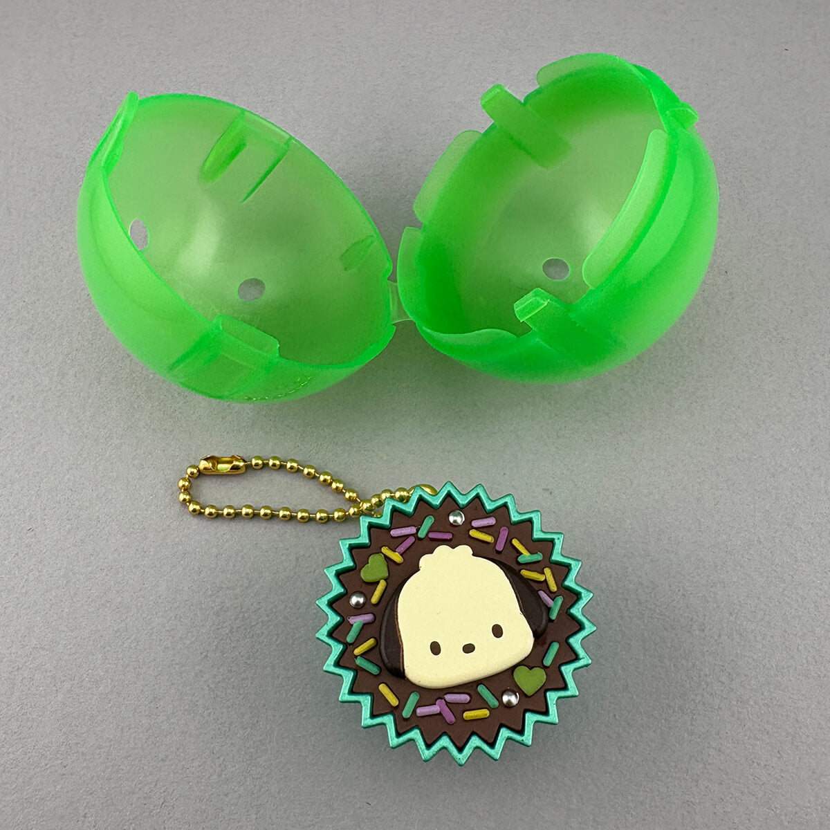 There are six Sanrio themed chocolates in this Gachapon series: Pochacco, Pompompurin, Kuromi, Hello Kitty, My Melody and Cinnamoroll.