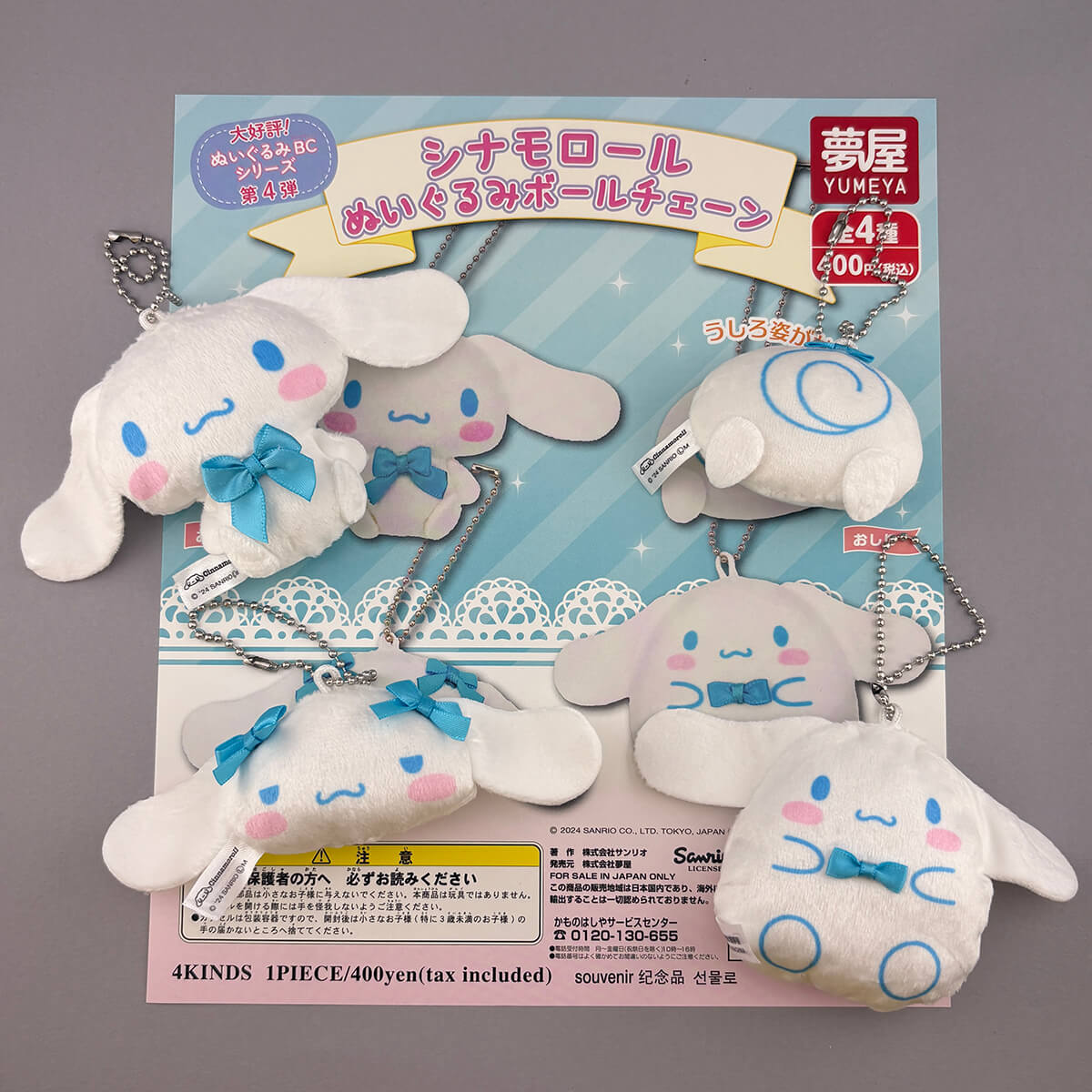 There are four Cinnamoroll characters in this Gachapon series: Cinnamoroll, Cinnamoroll Head, Cinnamoroll Buttocks and Cinnamoroll Perfectly Round.