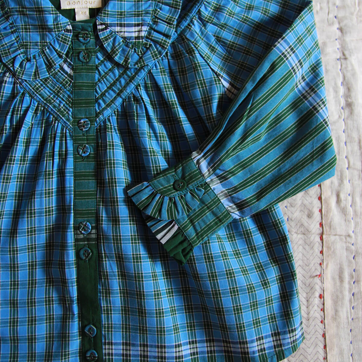 Iris Blouse in Green Lungi Check by Bonjour