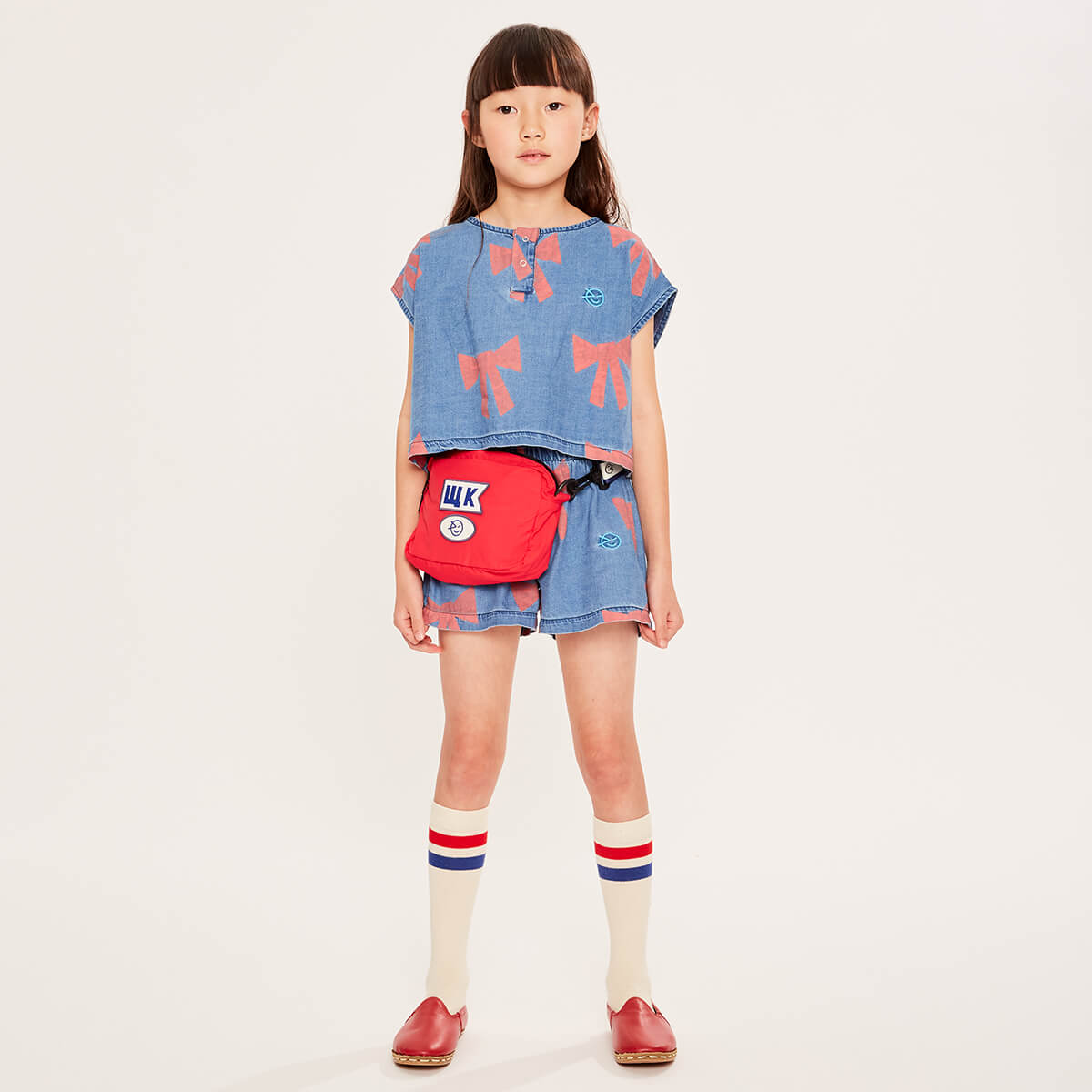 Bermuda Shorts by Wynken. These stylish shorts feature a bold, eye-catching red bow design, adding a fun pop of colour to every outfit. The friendly Wynk logo is embroidered on the front, bringing a cheerful touch to your child's wardrobe. With a relaxed fit and an elasticated waist, these shorts offer all-day comfort and freedom to move—whether you're running, jumping, or just having fun in the sun. Perfect for any casual day, these Bermuda shorts are the go-to choice for style and comfort.
