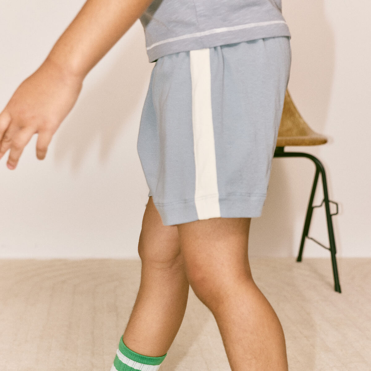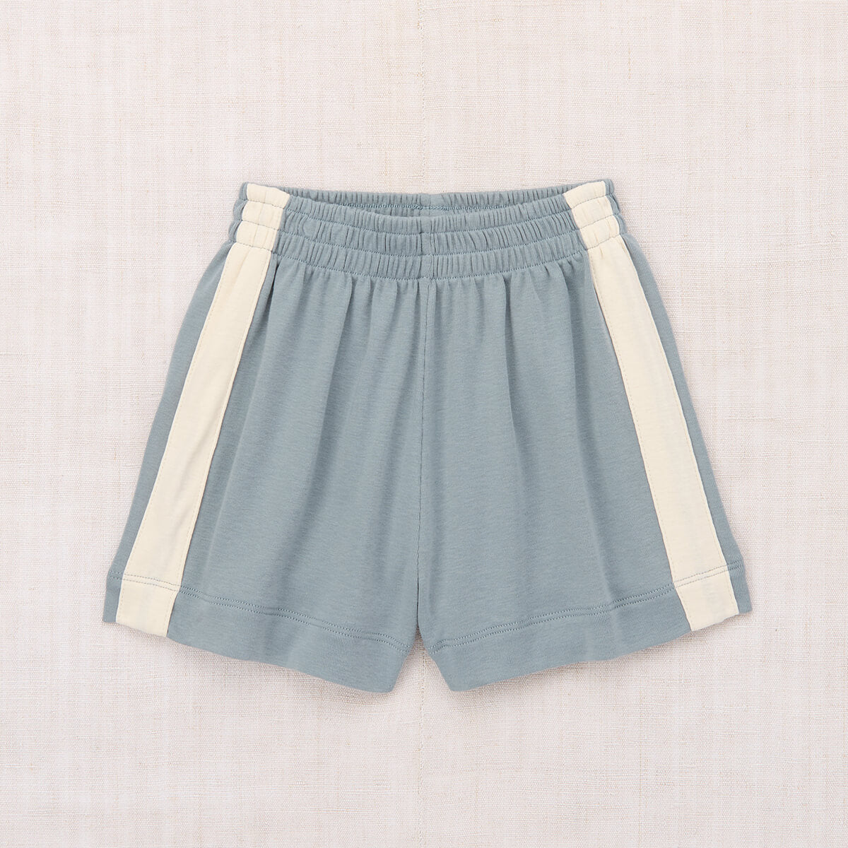 Resort Short by Misha & Puff. Vintage-style pull-on shorts in organic Pima cotton, with an elastic waistband and contrast appliqué striped sides.