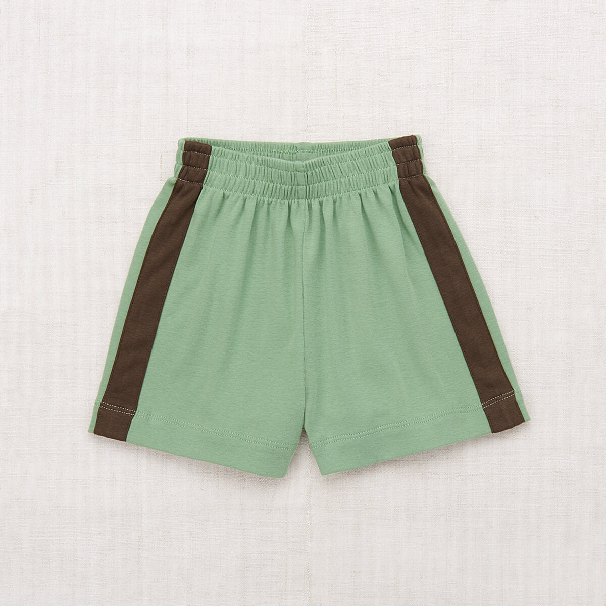 Resort Short by Misha & Puff. Vintage-style pull-on shorts in Pima cotton, with a gathered elastic waistband and contrast appliqué striped sides.