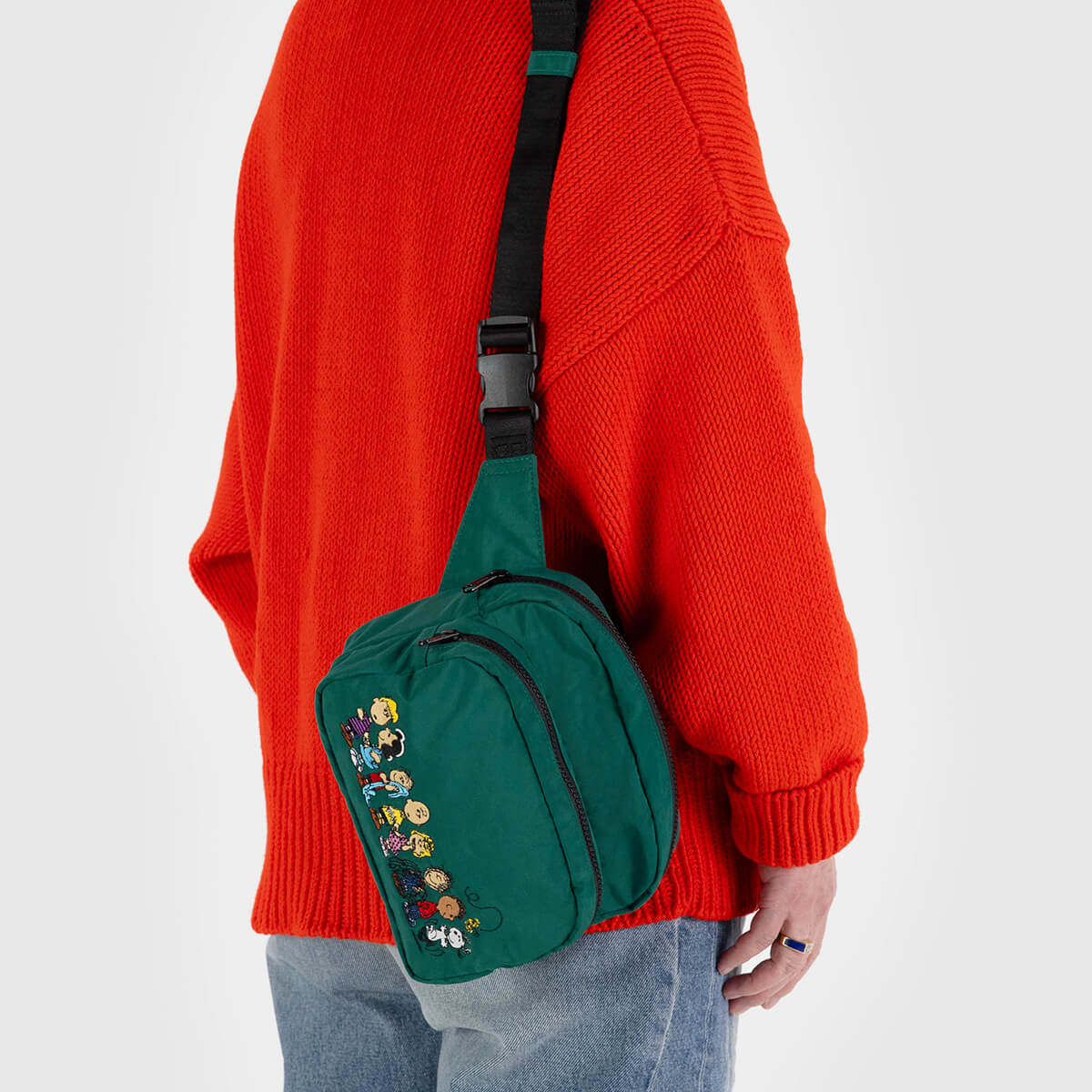 Fanny Pack by Baggu. A hands-free bag for any outing. Surprisingly spacious and made from durable, heavyweight nylon for easy cleaning. Wear across your body, over your shoulder or around your waist.