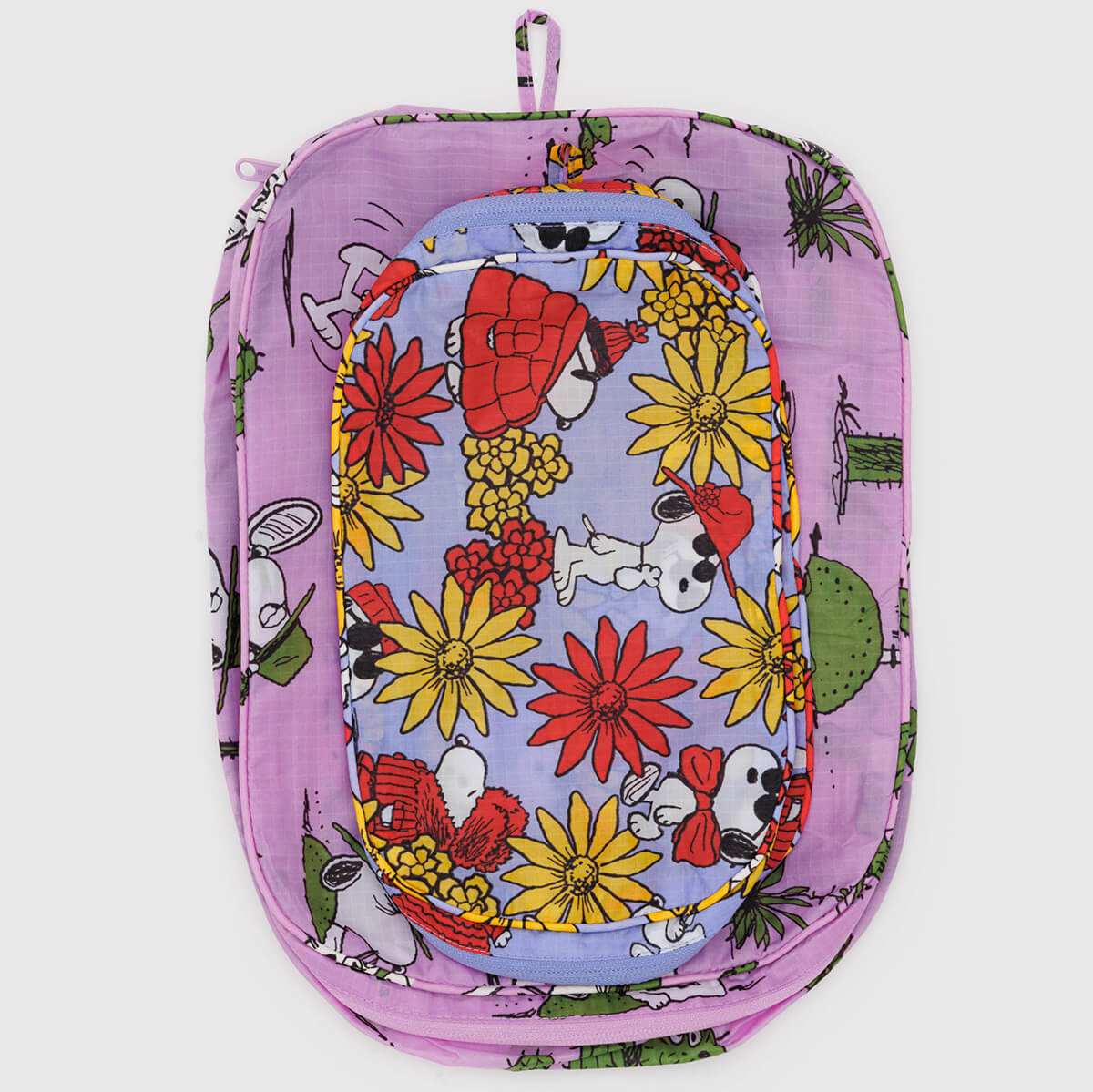 Packing Cube Set by Baggu. Travel-ready packing cubes to wrangle the biggest items on your packing list. Perfect for packing, organising your bag, or home tidying. Zip closure. Designed to keep smaller items like socks and t-shirts organised in your travel bag.