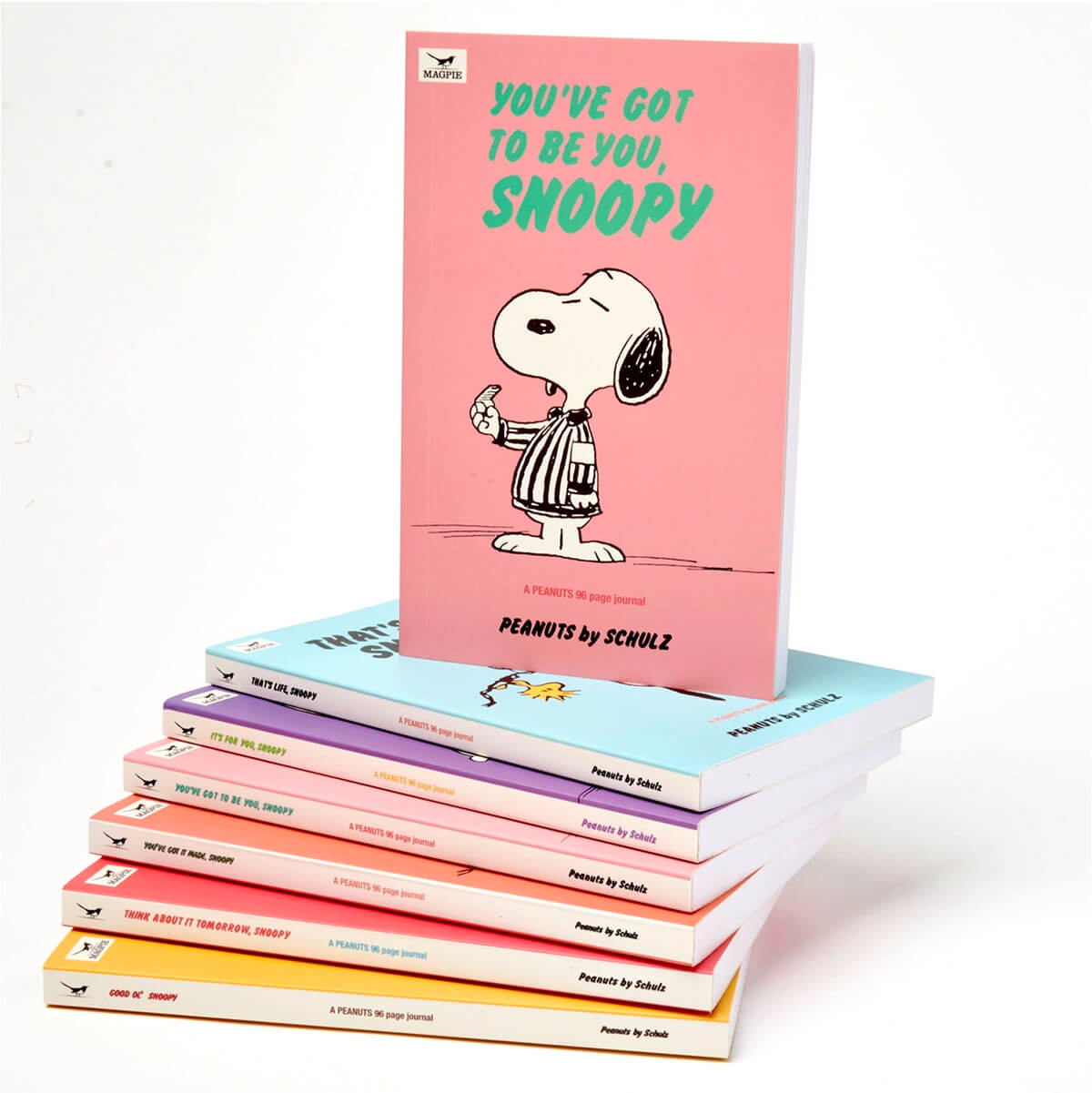 You've Got To Be You Snoopy Journal by Magpie. 96 page Journal in the style of the original 1970's Peanuts paperback books. With 32 grid, 32 plain and 32 Lined pages.