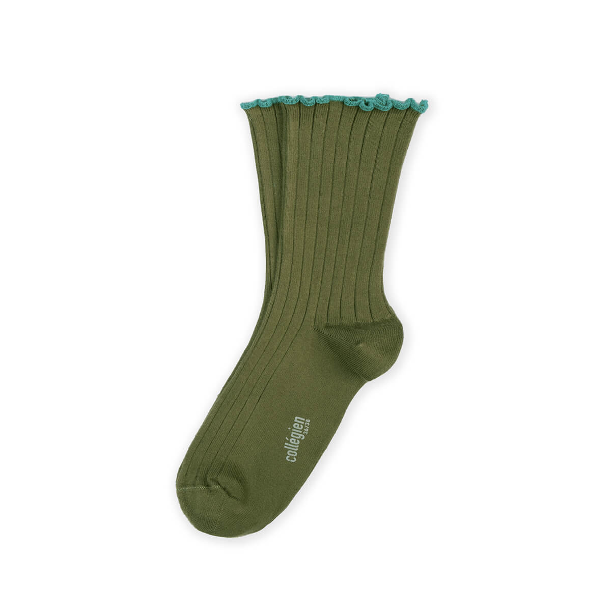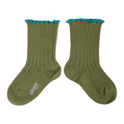 Delphine Lettuce Trim Ribbed Ankle Socks in Olive Du Luberon by Collegien