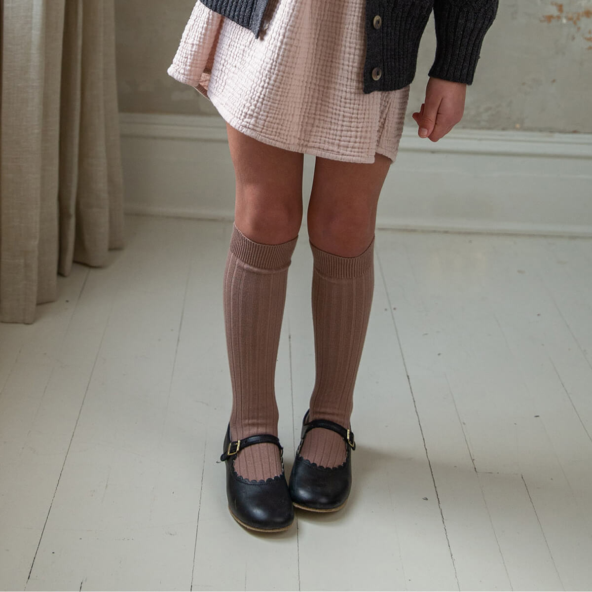 La Haute Ribbed Knee High Socks in Praline by Collegien - Last One In Stock - 1-2 Years