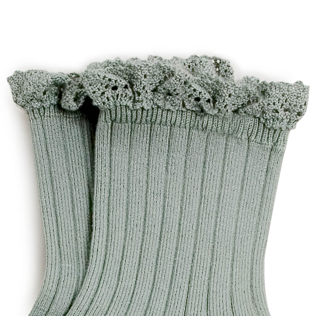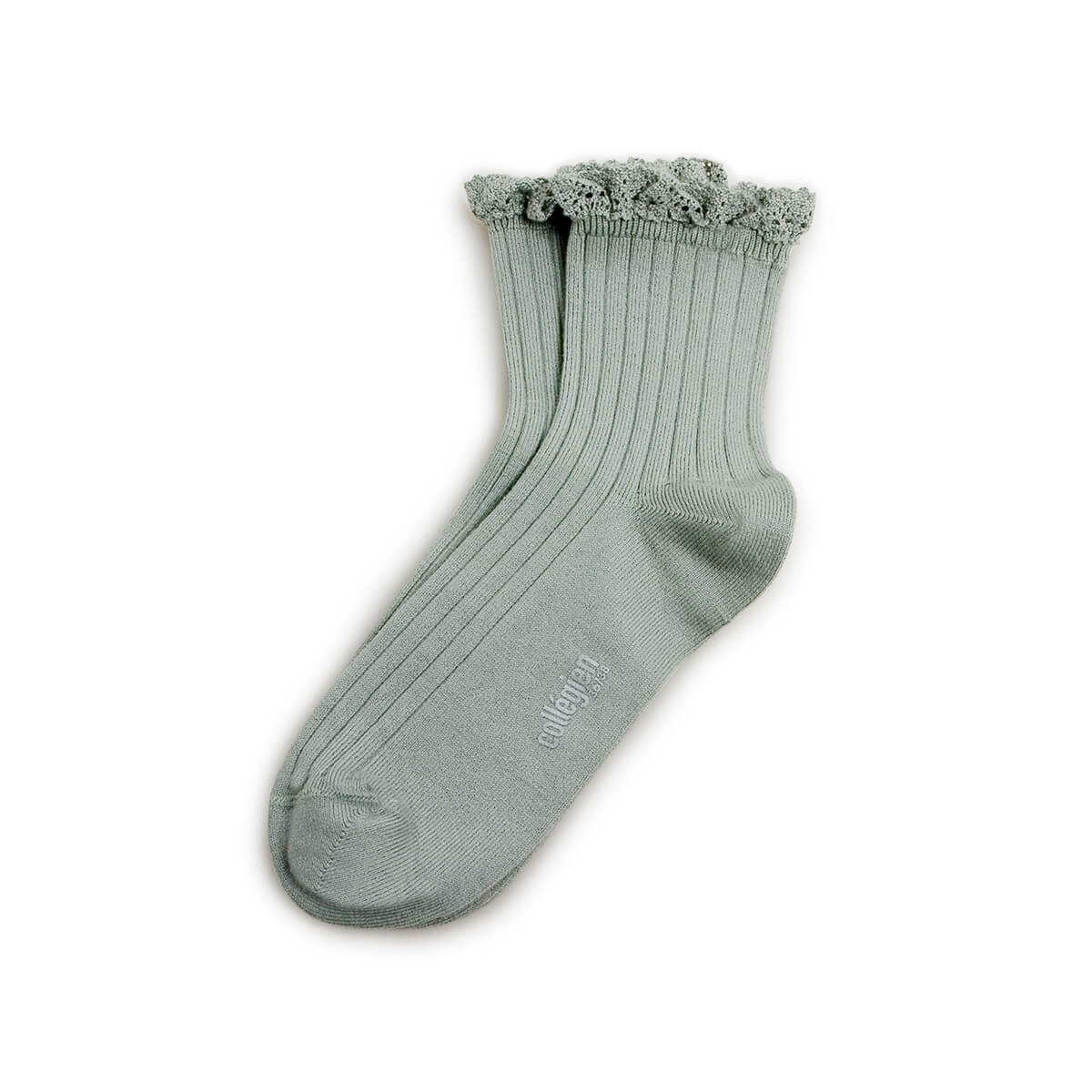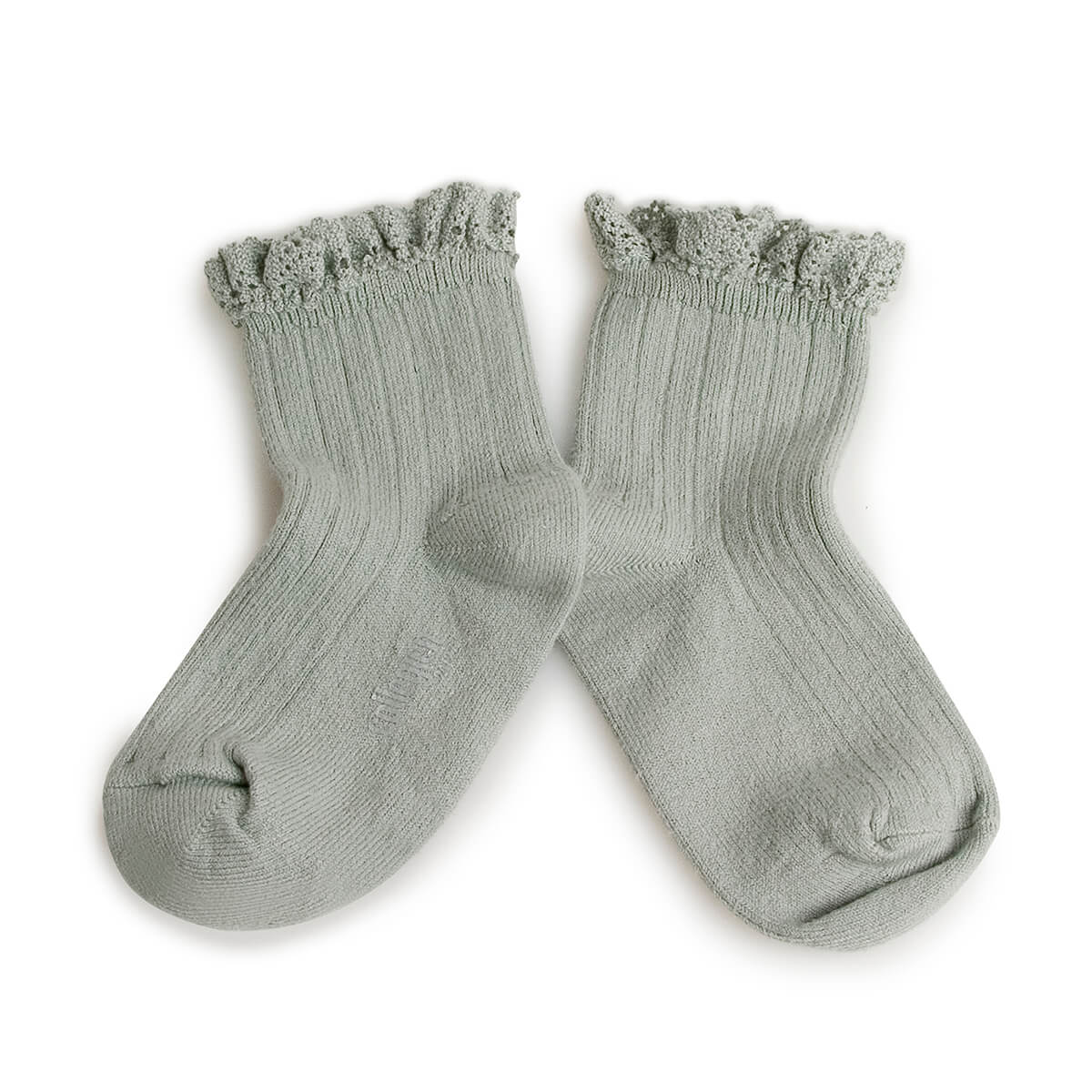 Lili Lace Trim Ribbed Ankle Socks in Aigue Marine by Collegien