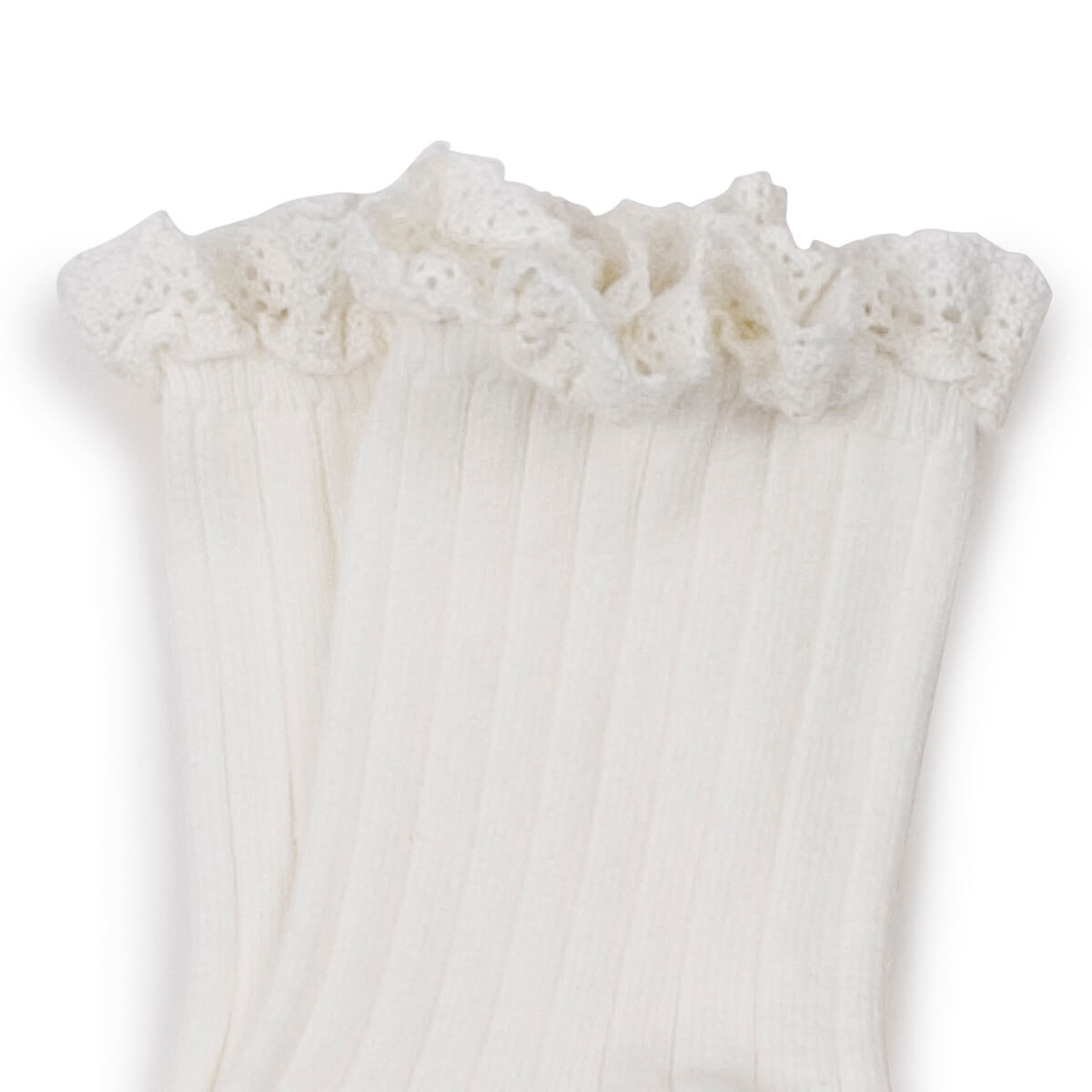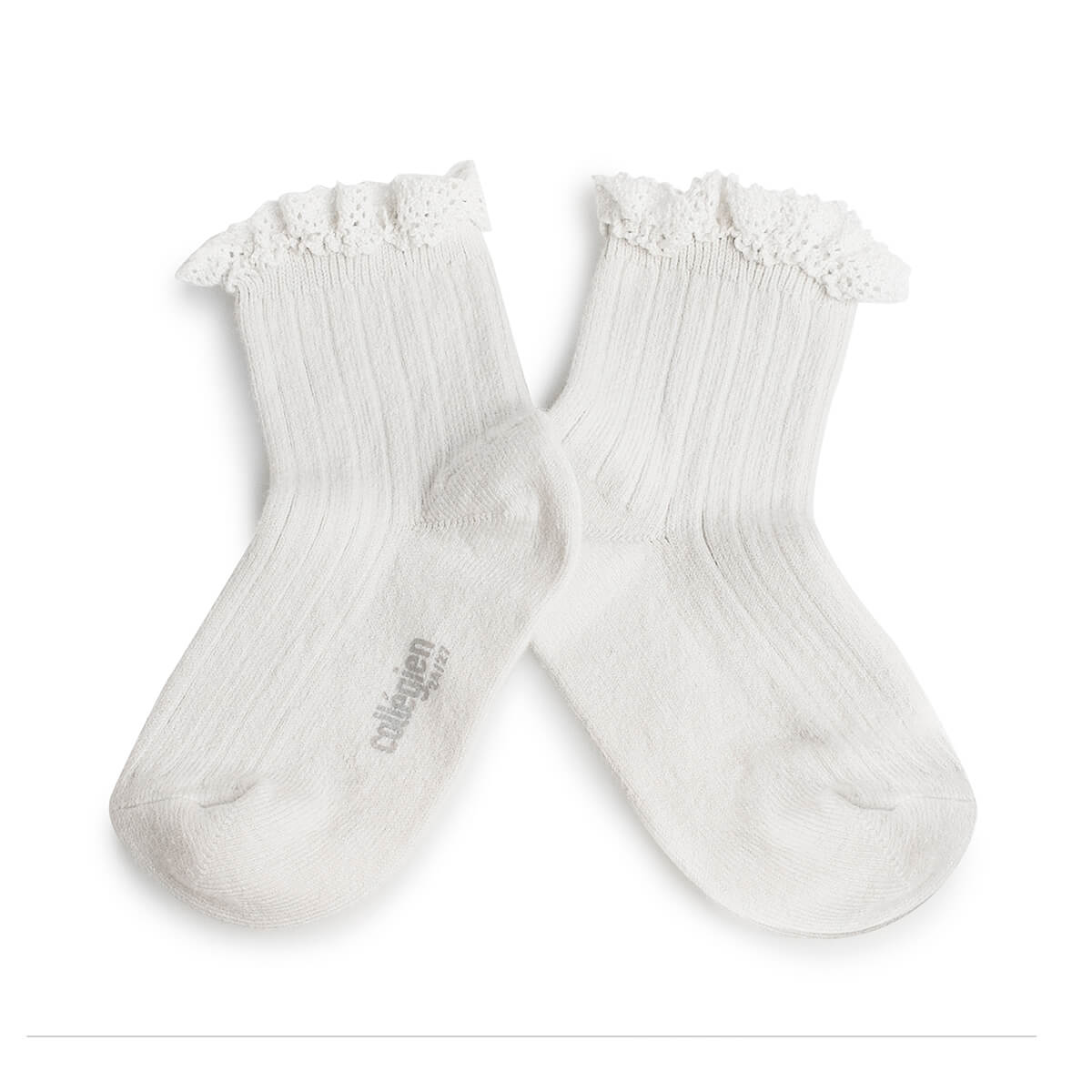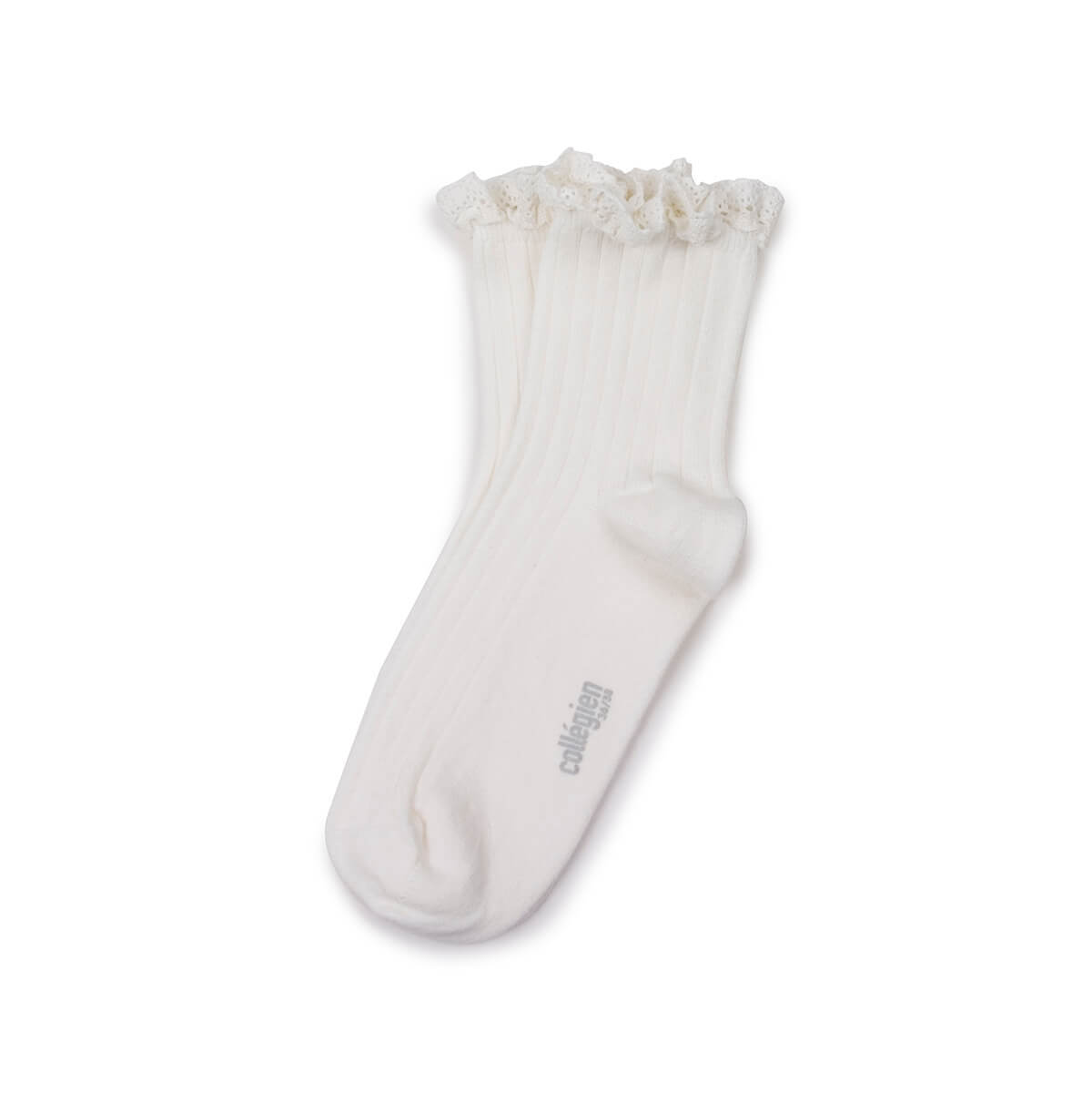 Lili Lace Trim Ribbed Ankle Socks in Blanc Neige by Collegien