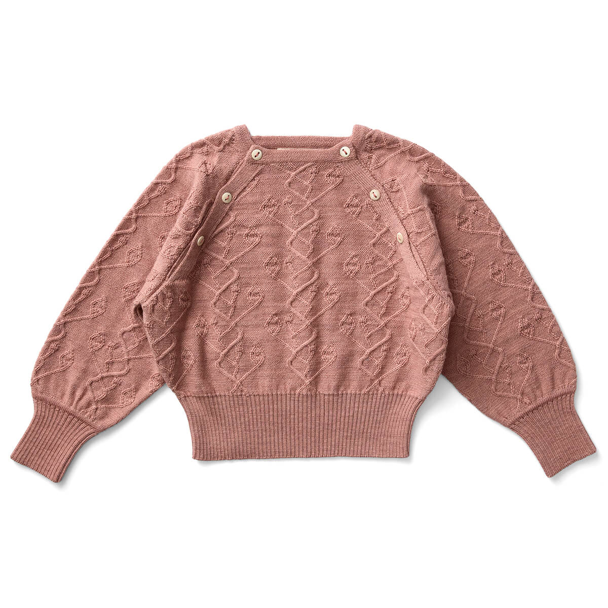 Hawk Pullover by Soor Ploom. Square neck sweater in a vine stitch with double rows of natural horn buttons at raglan openings.