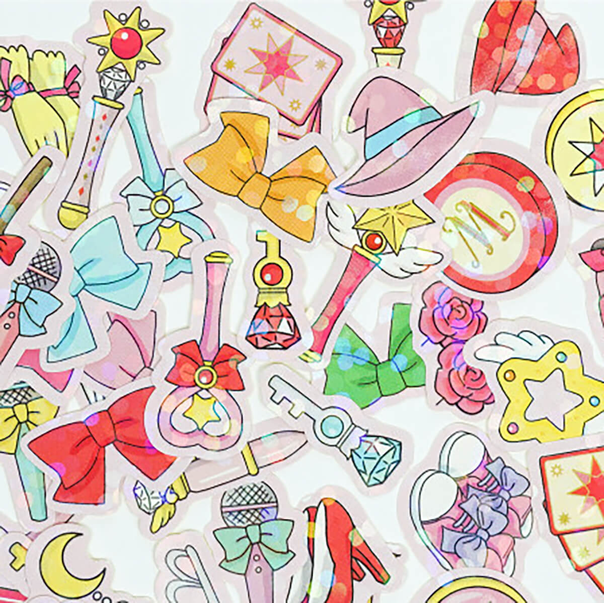 Anime Magic Stickers by Haco. How cute is this miniature box of girly, magical-themed stickers! The packaging is designed as if you're receiving a box containing an order of these items. It's even packed with a tiny invoice and layer of bubble wrap for a captivating unboxing experience.